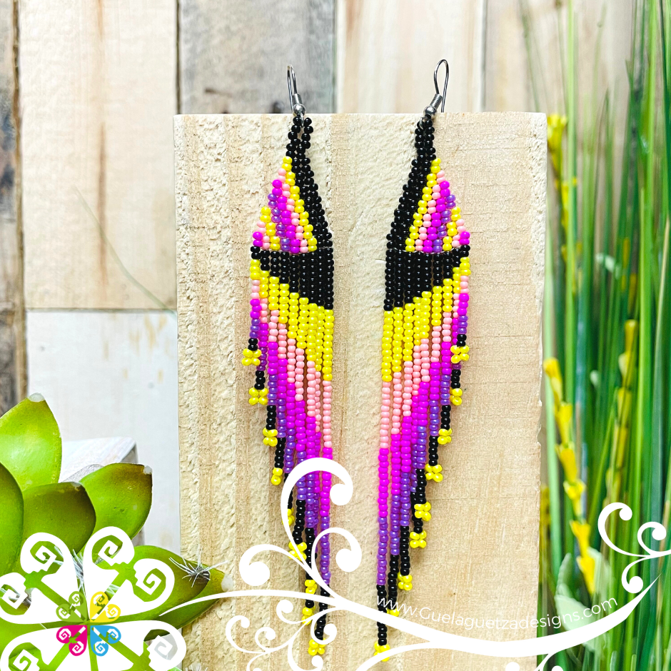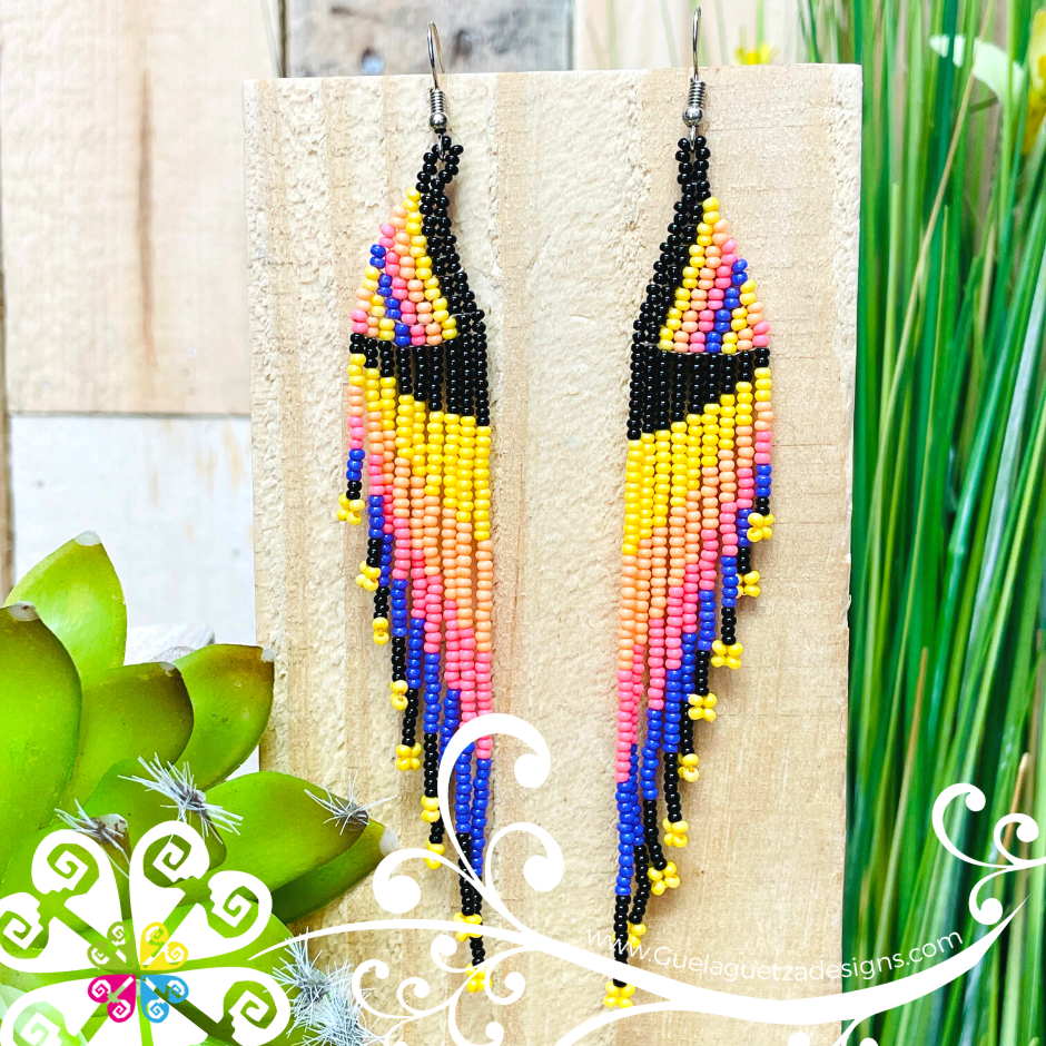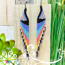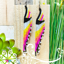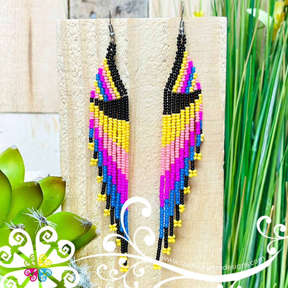 One of a kind earrings made with petite glass beads. Each design uses different shapes and colors, featuring a vibrant rainbow palette or just plain colors.