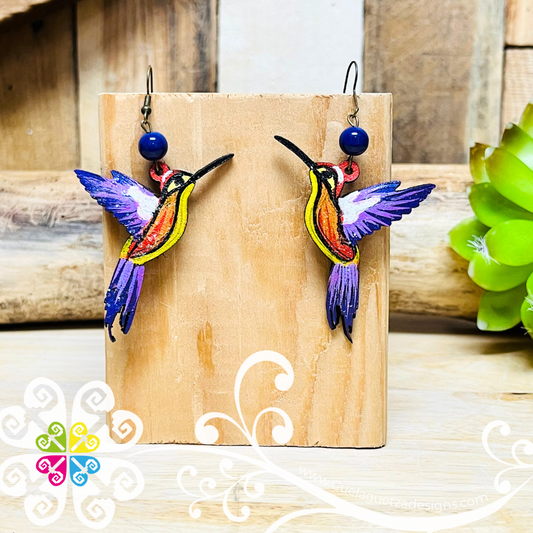 Colibri Hand Painted Earrings - Artisan Leather Earrings