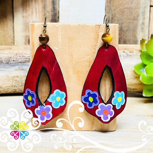 Tri Flower Hand Painted - Artisan Leather Earrings