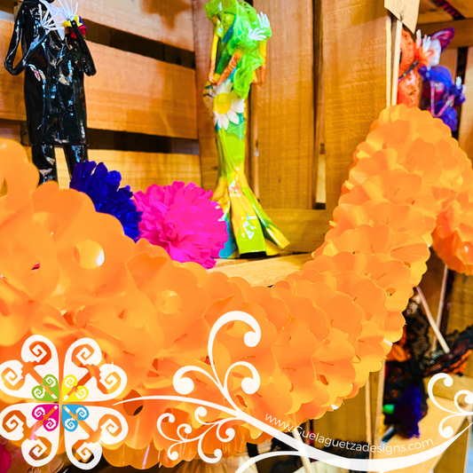 Small Orange Fiesta Decor - Worm Flower Banner - Day of the Dead Decor