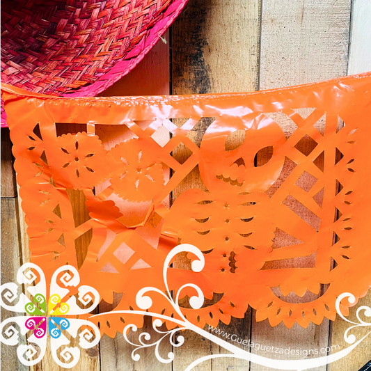 Medium Orange Black Day of the Dead Banner - Plastico Picado