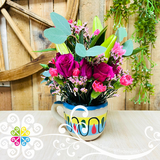 Floral Blue Talavera Ponchera Mug - Single Talavera Mug