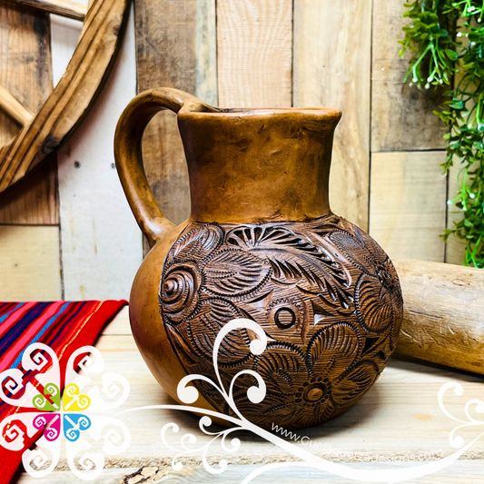 Elegant Carved Pitcher - Barro Café Oaxaca