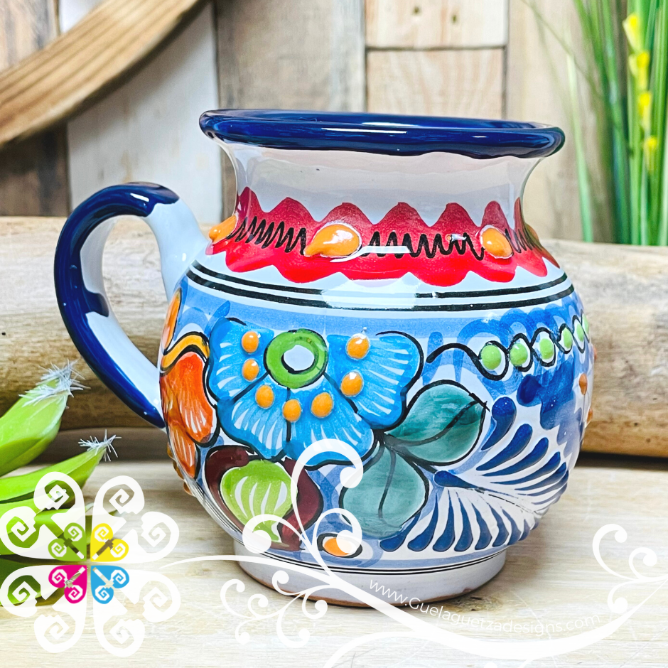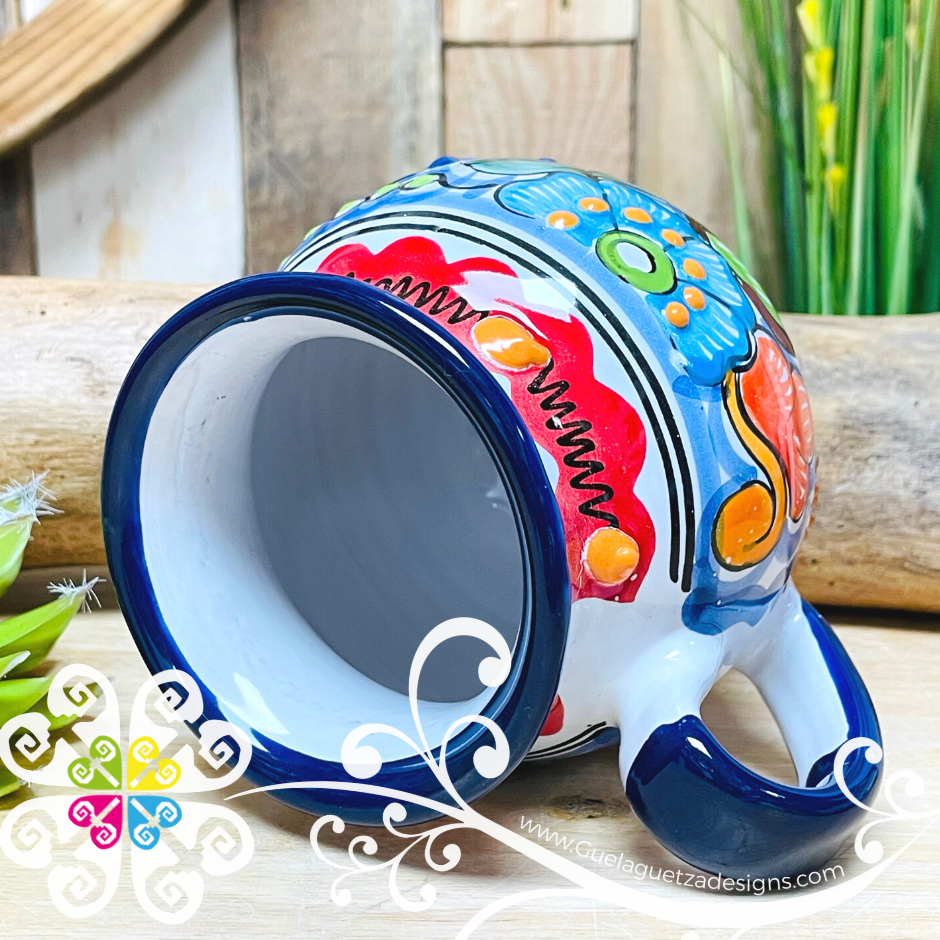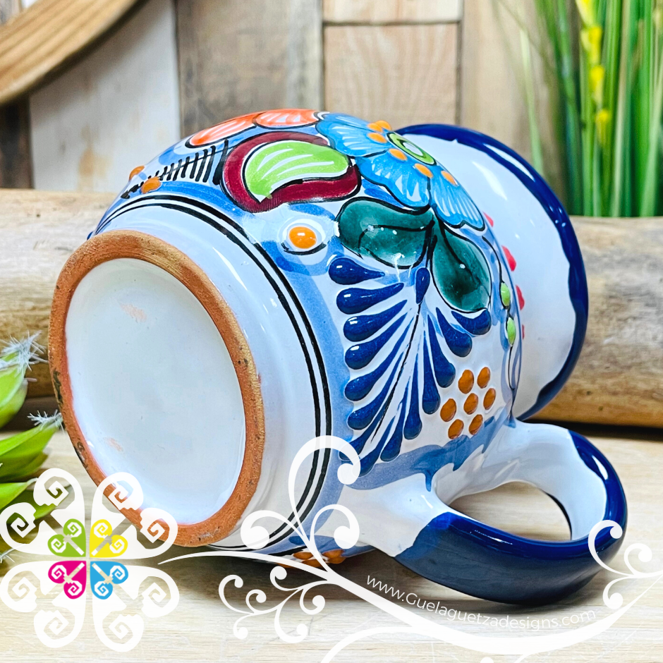 Beautiful ponchera mug hand crafted by hand, with love and passion by artisans from Puebla, Mexico. The eye catching paint strokes on the Talavera Mug are enchanting. Creating and homey, welcoming aspect to the work of art.