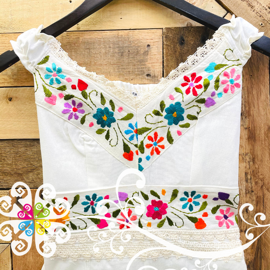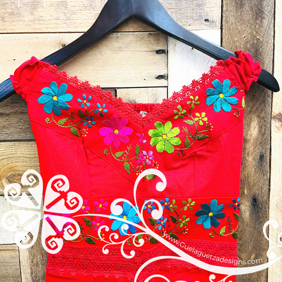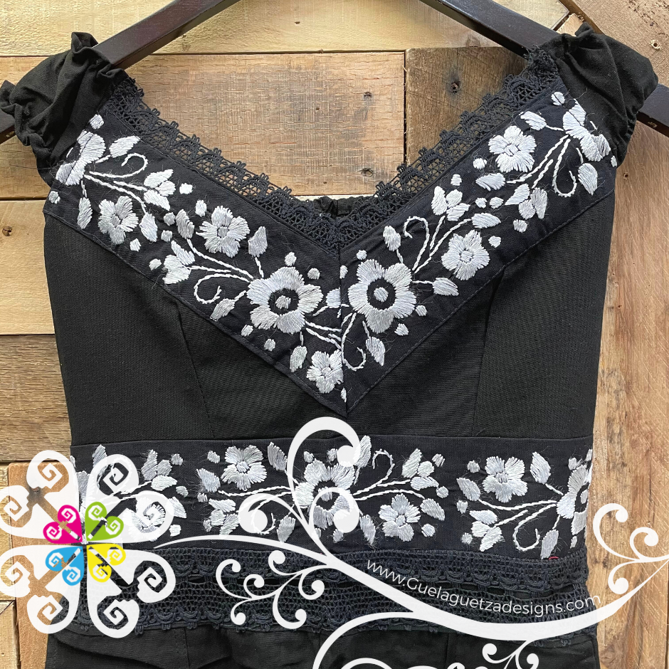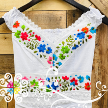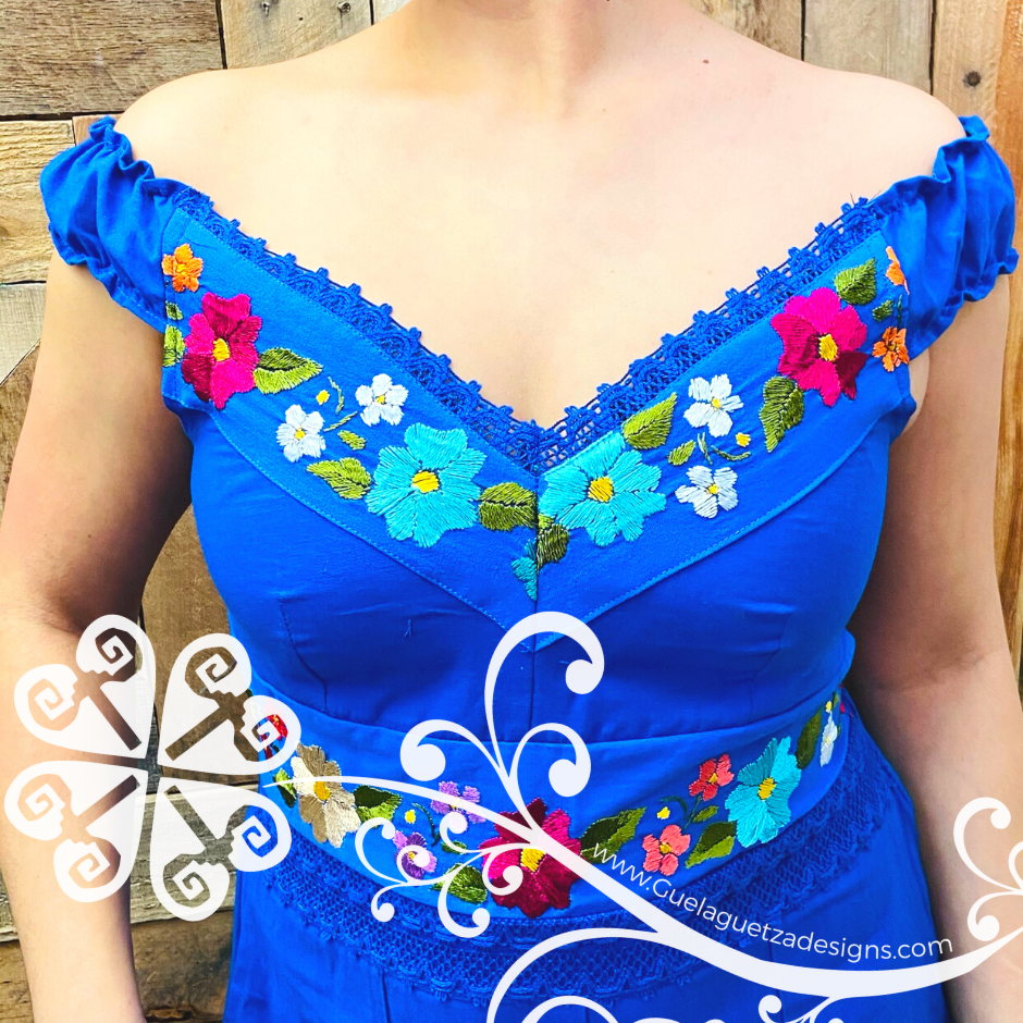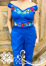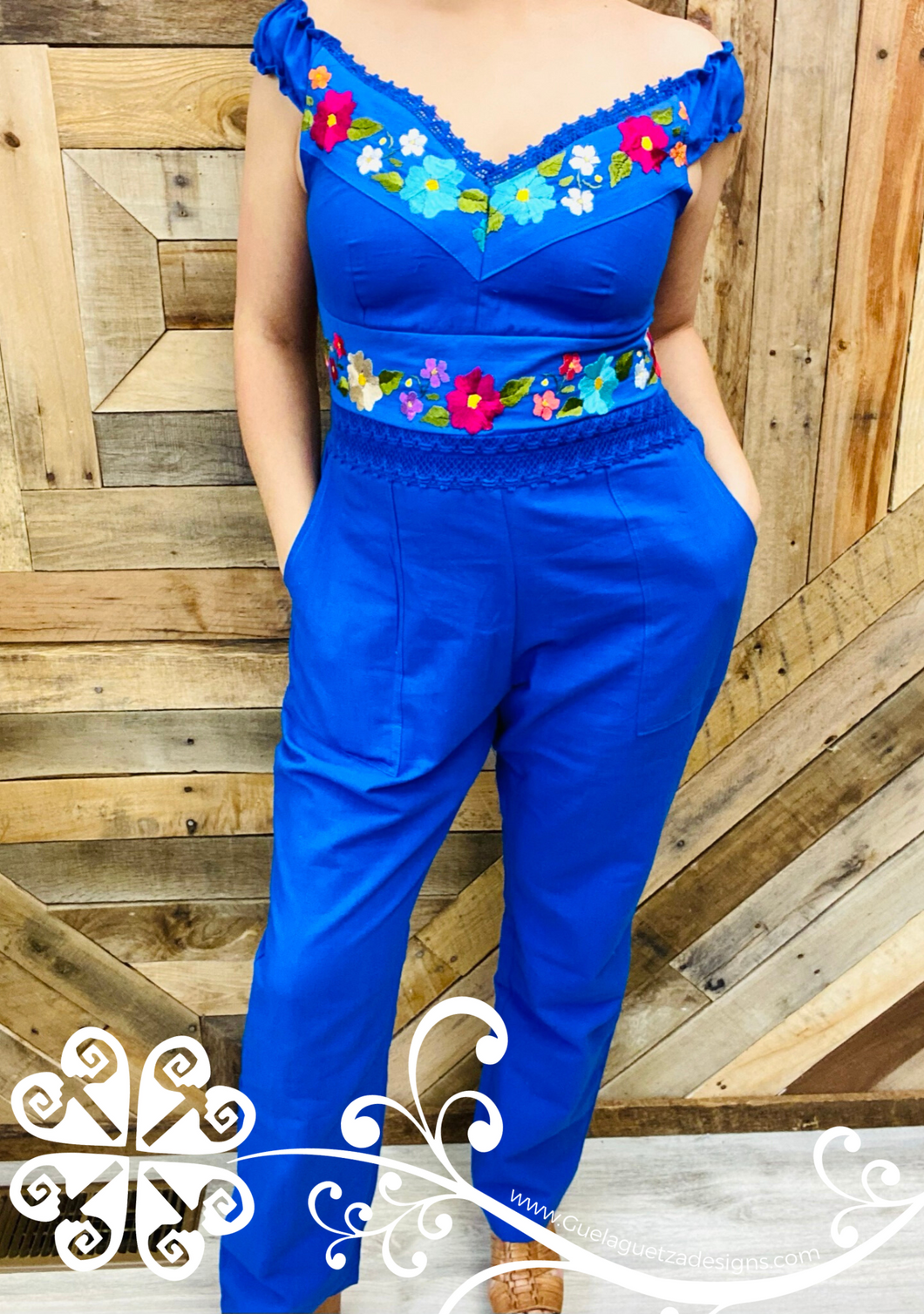 Beautiful one piece palazzo, fresh and fun design for any day. Made with 'manta' cotton fabric and cotton lace. The top features an elegant neck with colorful embroider and matching waist/belt. Comfortable pockets on the front. The elastic on the back help to adjust to your curves.