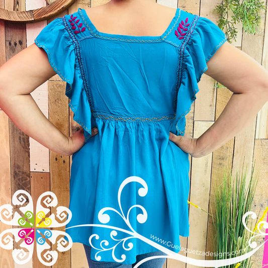 Teal Blusa Chiapas - Flutter Sleeve Top