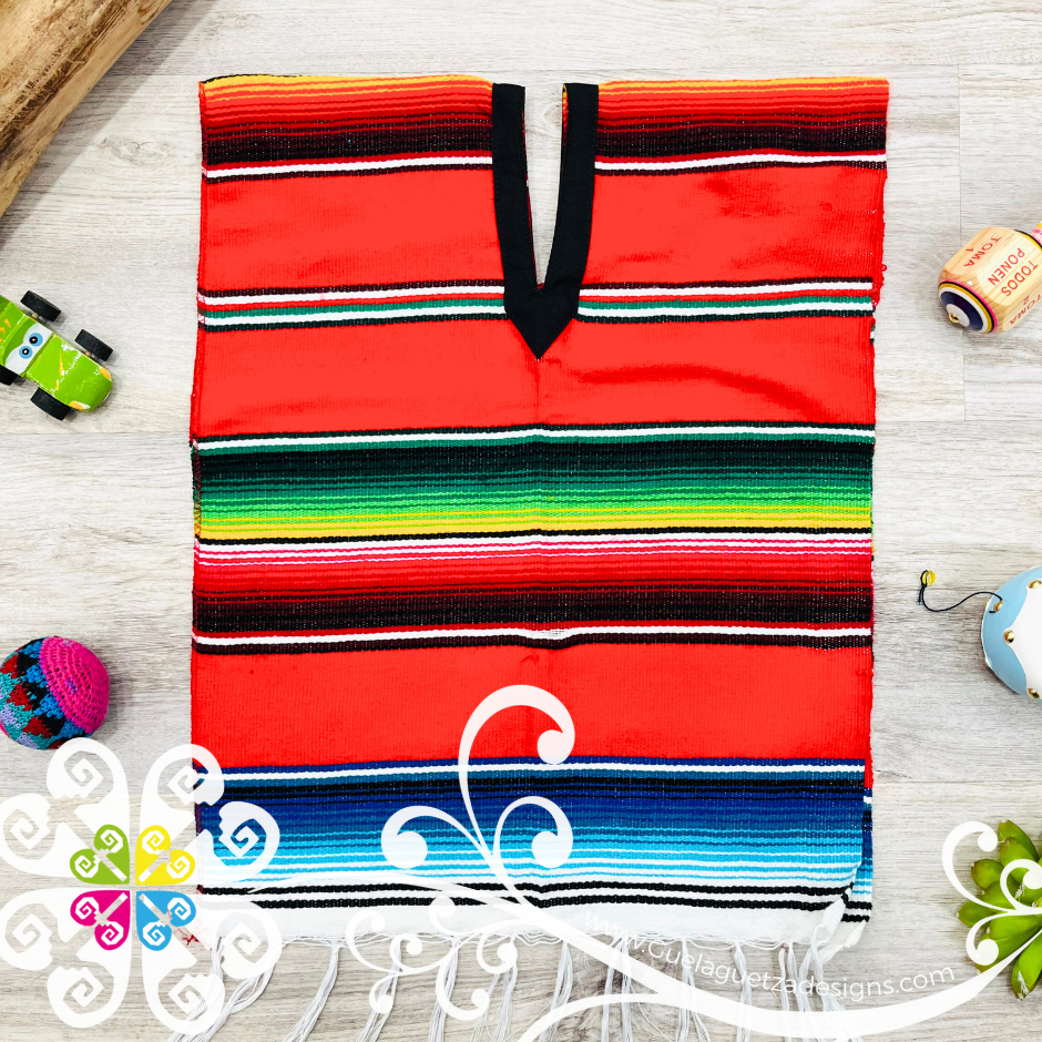 Super cool long poncho featuring sarape fabric. Elaborated with threads of cotton and polyester, hand knitted on both front and back bottom.