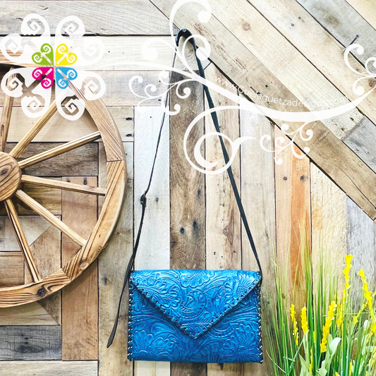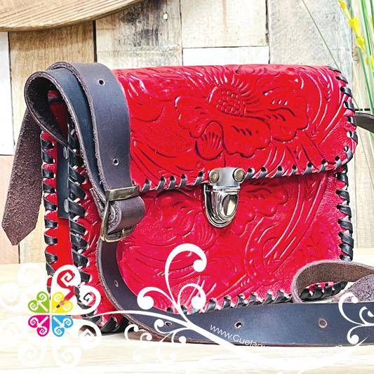 Floral Stamping Leather Crossbody - Carteron de Piel