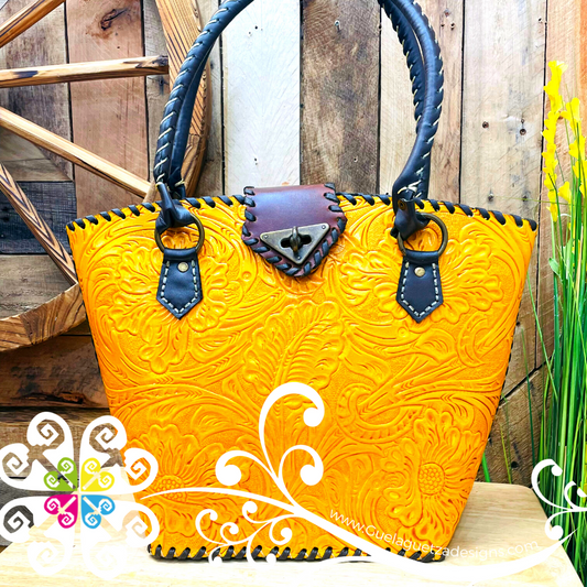 Floral Stamping Leather Bag - Medium Carteron de Piel