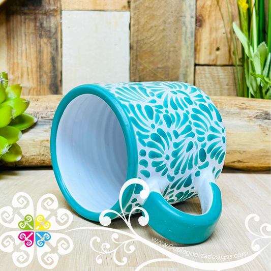 Mint Green Feathers Talavera Mug - Single Talavera Mug