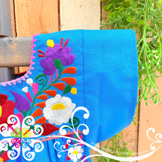 Blue Turquoise Vestido Tehuacan Nina - Tehuacan Children Dress