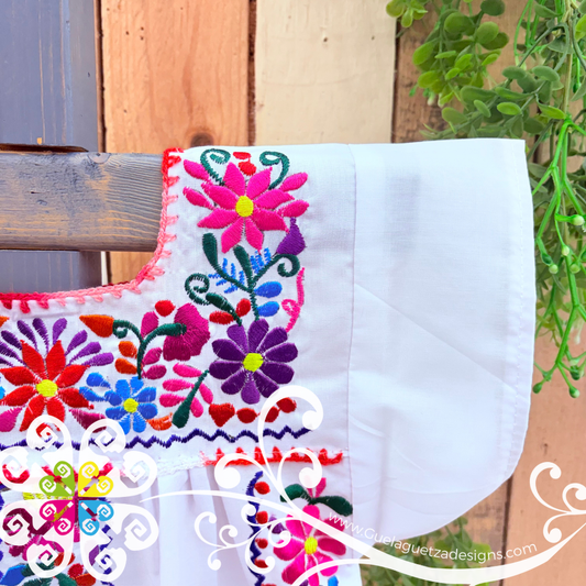 White Vestido Tehuacan Nina - Tehuacan Children Dress
