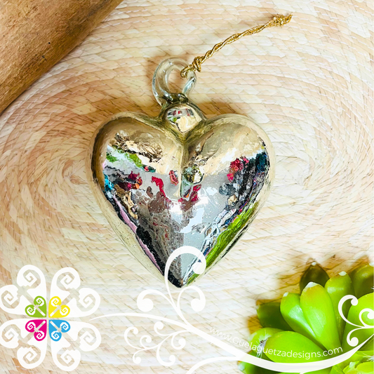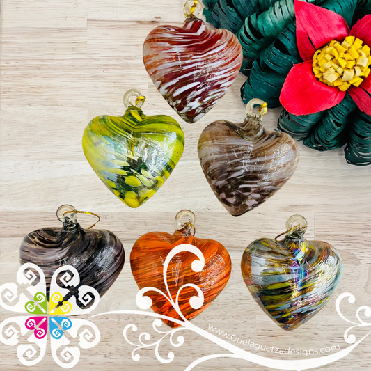 Set of Metallic Glass Heart Ornaments - Vidrio Soplado