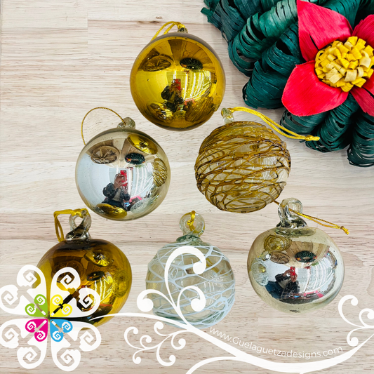 Set of Round Glass Ornaments - Christmas Vidrio Soplado Ornaments