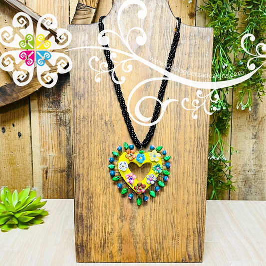 Mini Flower Hollow Heart Necklace - Corazon de la Vida - Collar Barro Cocido