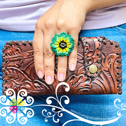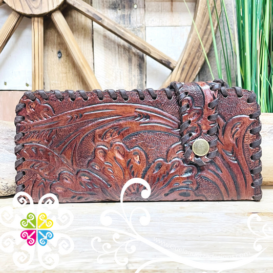 Floral Stamping Cartera Troquelada - Leather Wallet