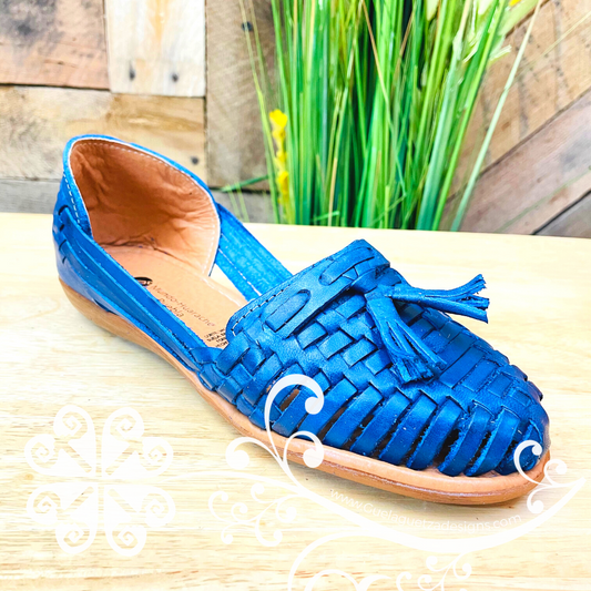 Navy Blue Tassels Flat Shoes - Huarache Piel