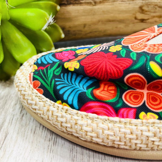 Multicolor Flowers Burlap Artisan Slip On - Women Shoes