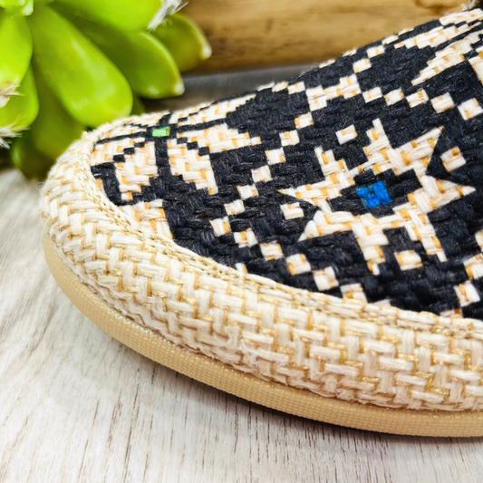 Black and Beige Shapes Burlap Artisan Sneakers - Women Shoes