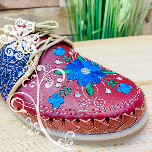Embroider Loafers Artisan Leather Women Shoes - Blue Flower Mosaic