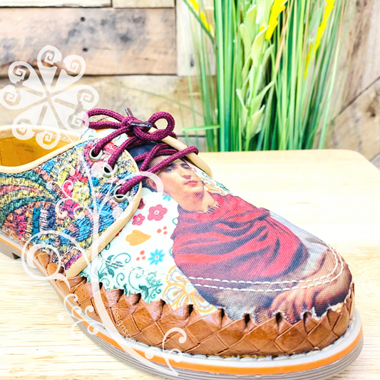 Frida Red Scarf/Feathers - Loafers Artisan Leather Women Shoes