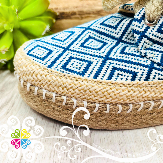 Blue Rhombus Burlap Artisan Platform Sneakers - Women Shoes