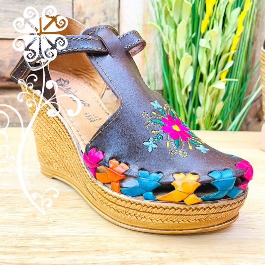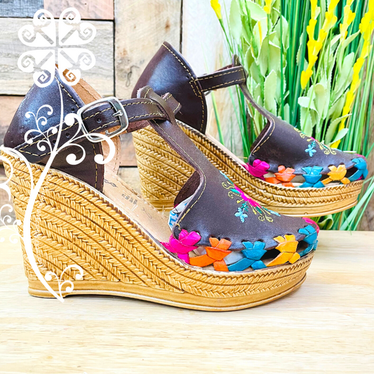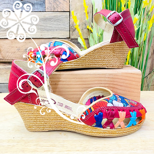 Buckle Wedges Women Shoes - Red Flower Mosaic