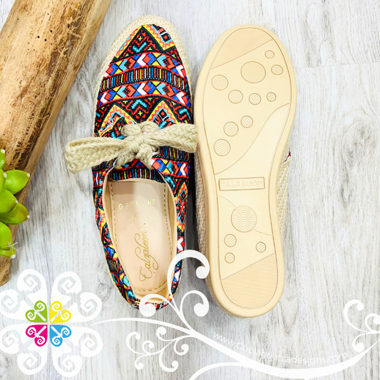 Multicolor Geometric Shapes Burlap Artisan Sneakers - Women Shoes