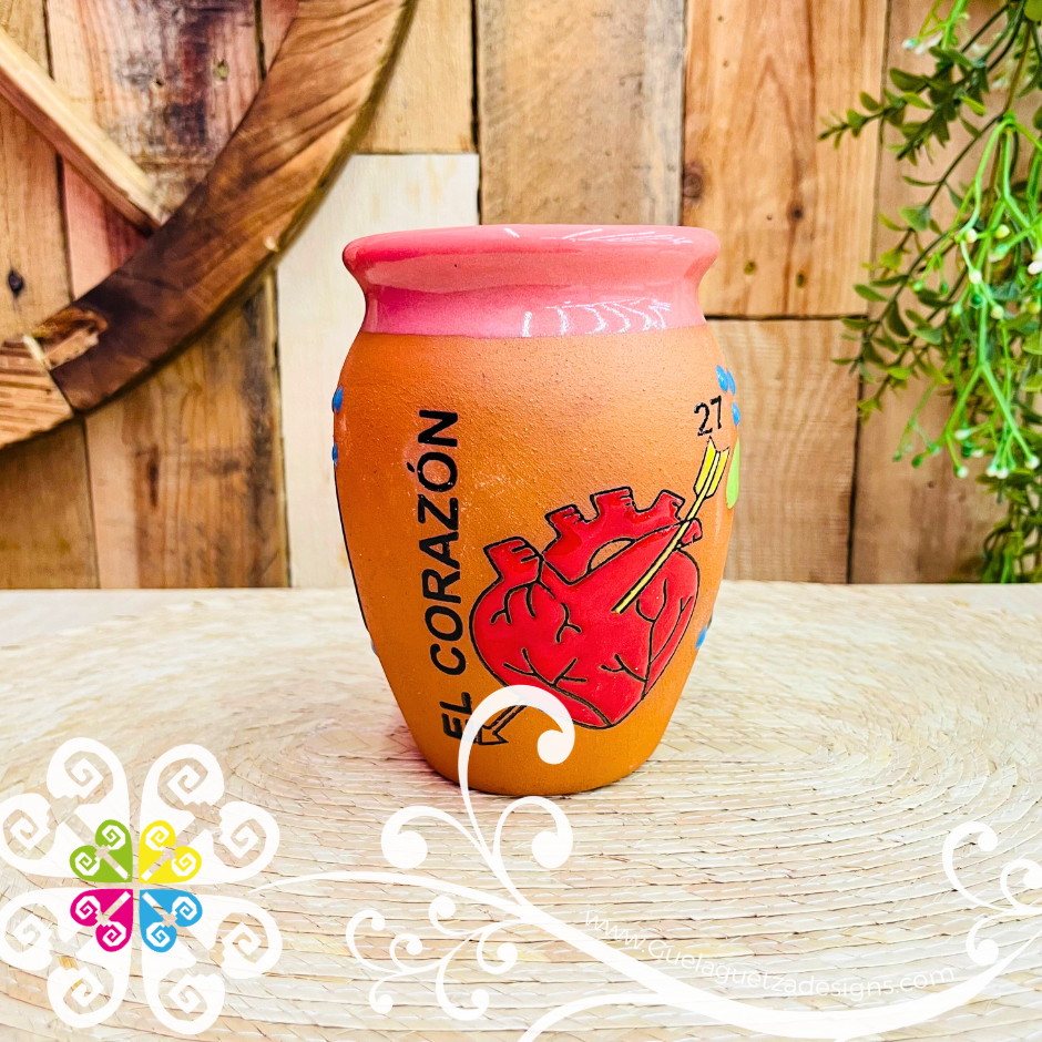 27 - El Corazon Cantarito LoteriaMX - Single Clay Cantarito