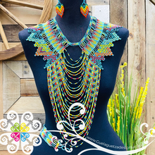 Beautiful 3 piece set that includes matching earrings, necklace and bracelet so you look amazing next time you go out. Each design is made with petite glass beads, featuring super cute symmetric designs made with different colors that can go from vibrant rainbow palette or just subtle tones.