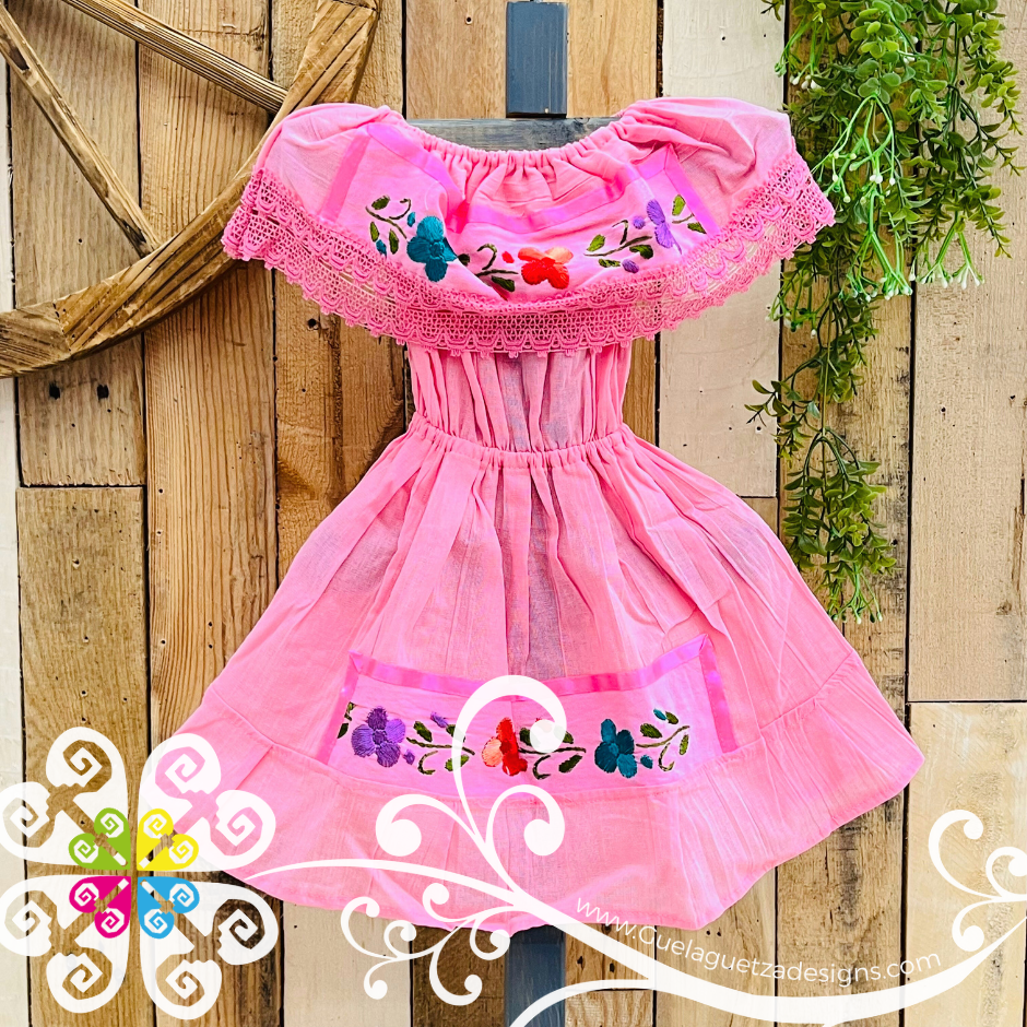 Baby Pink Aro Embroider Campesino Children Dress