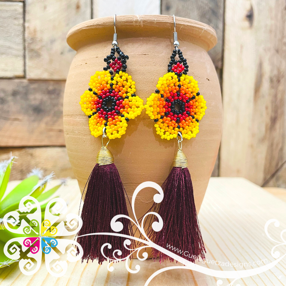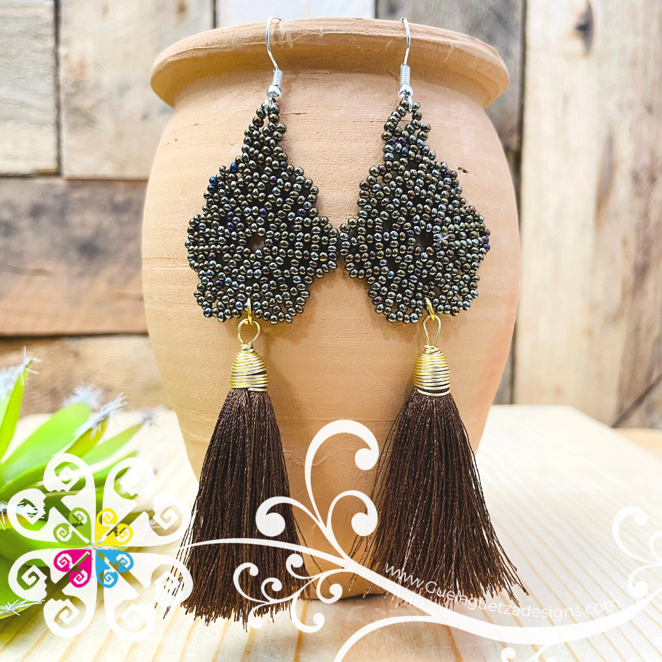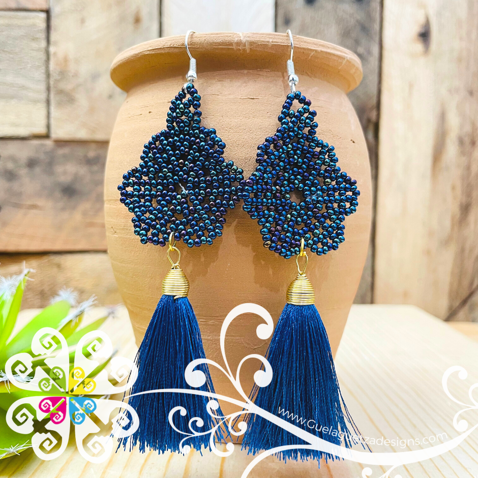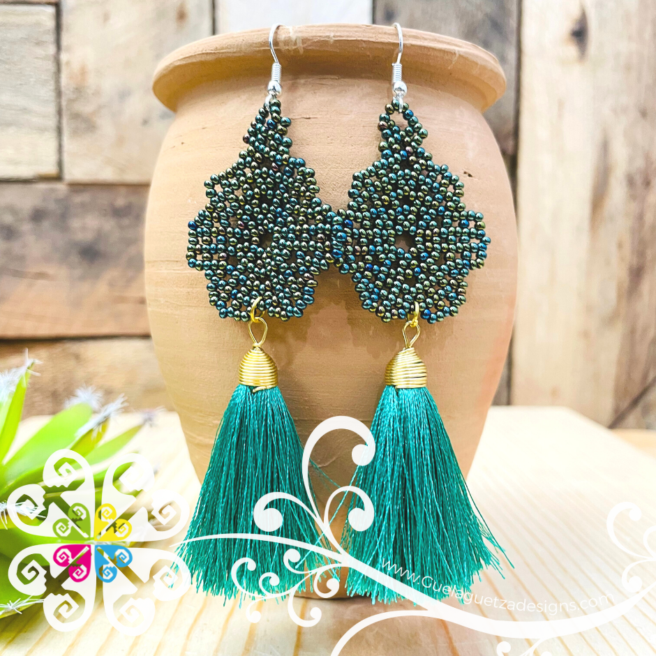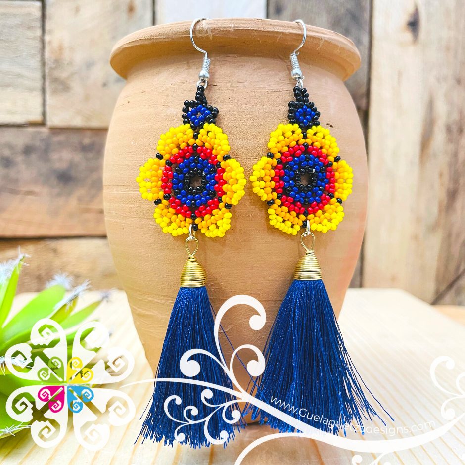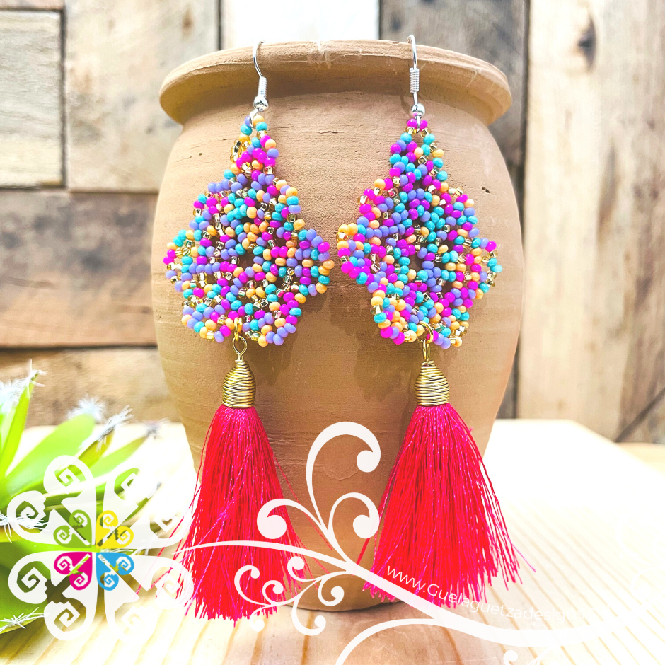 One of a kind earrings made with petite glass beads. Each design uses different shapes and colors, featuring a vibrant rainbow palette or just plain colors.