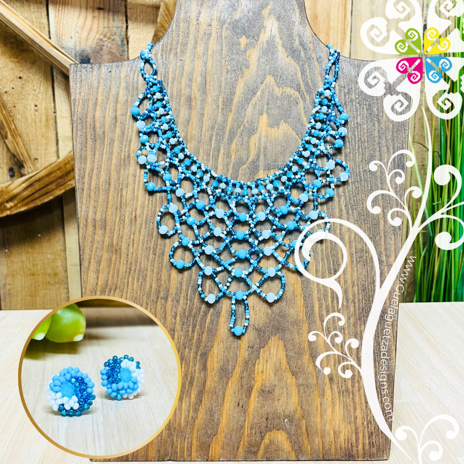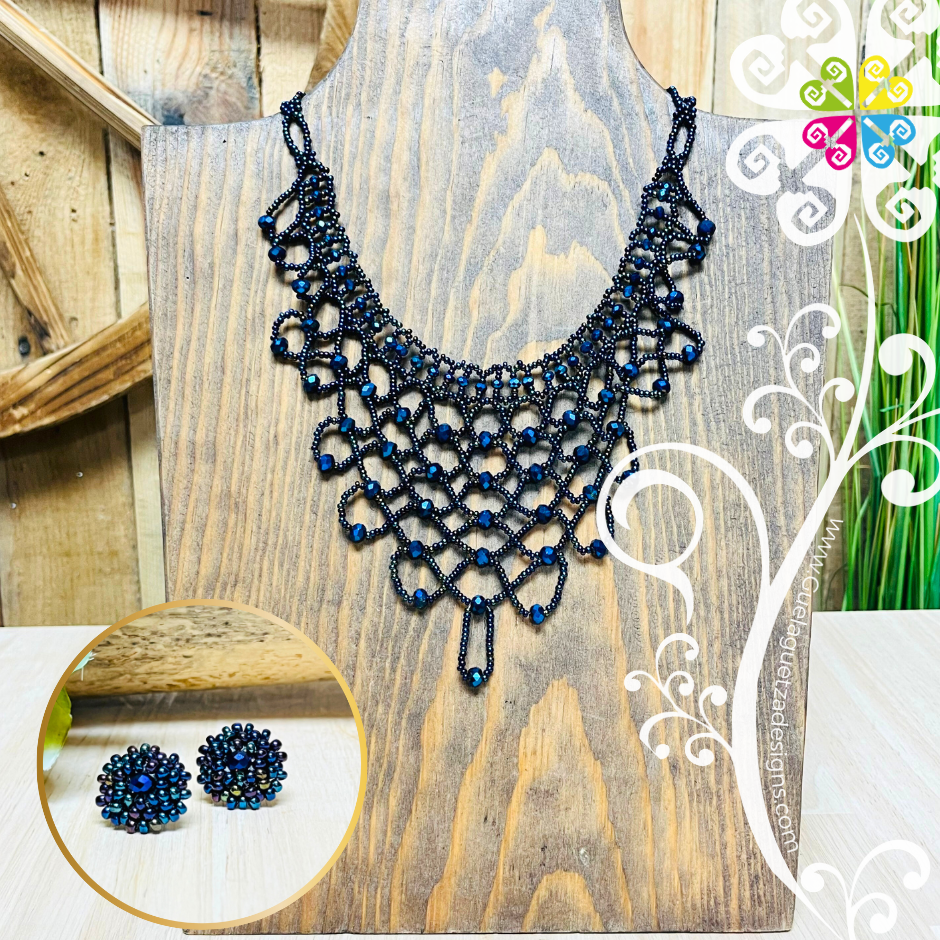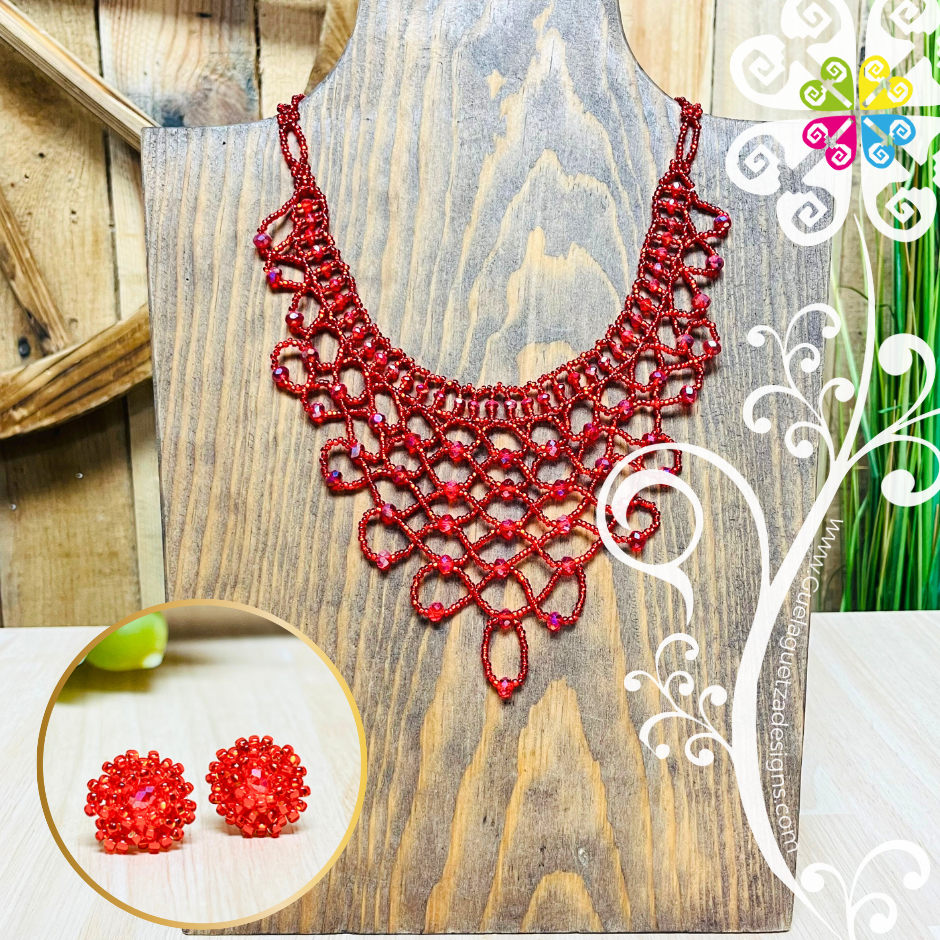 Beautiful 2 piece set that includes matching earrings and, necklace so you look amazing next time you go out. Each design is made with petite glass beads, featuring super cute flower designs made with different colors that can go from vibrant rainbow palette or just subtle tones.