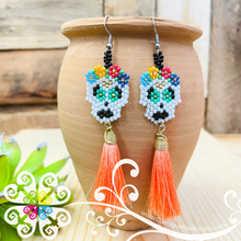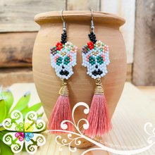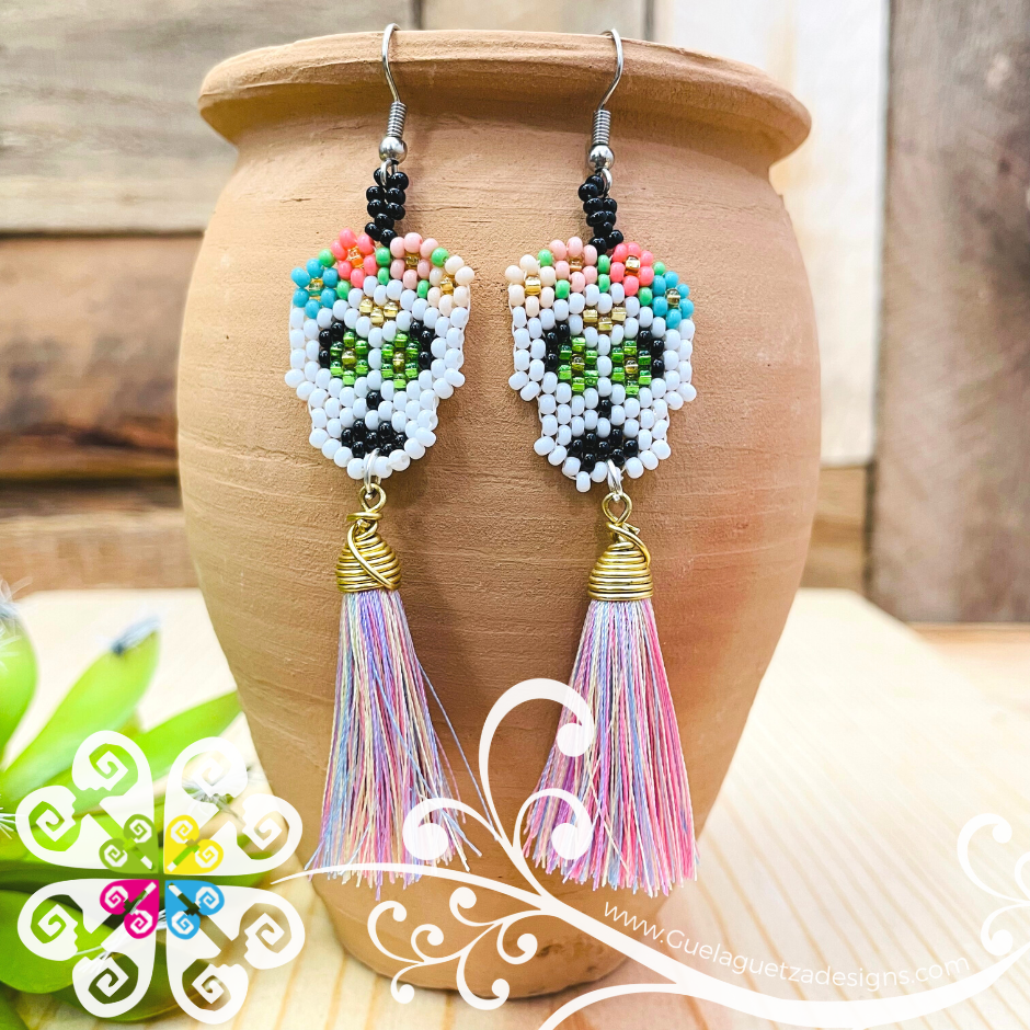 One of a kind earrings made with petite glass beads. Each design uses different shapes and colors, featuring a vibrant rainbow palette or just plain colors.