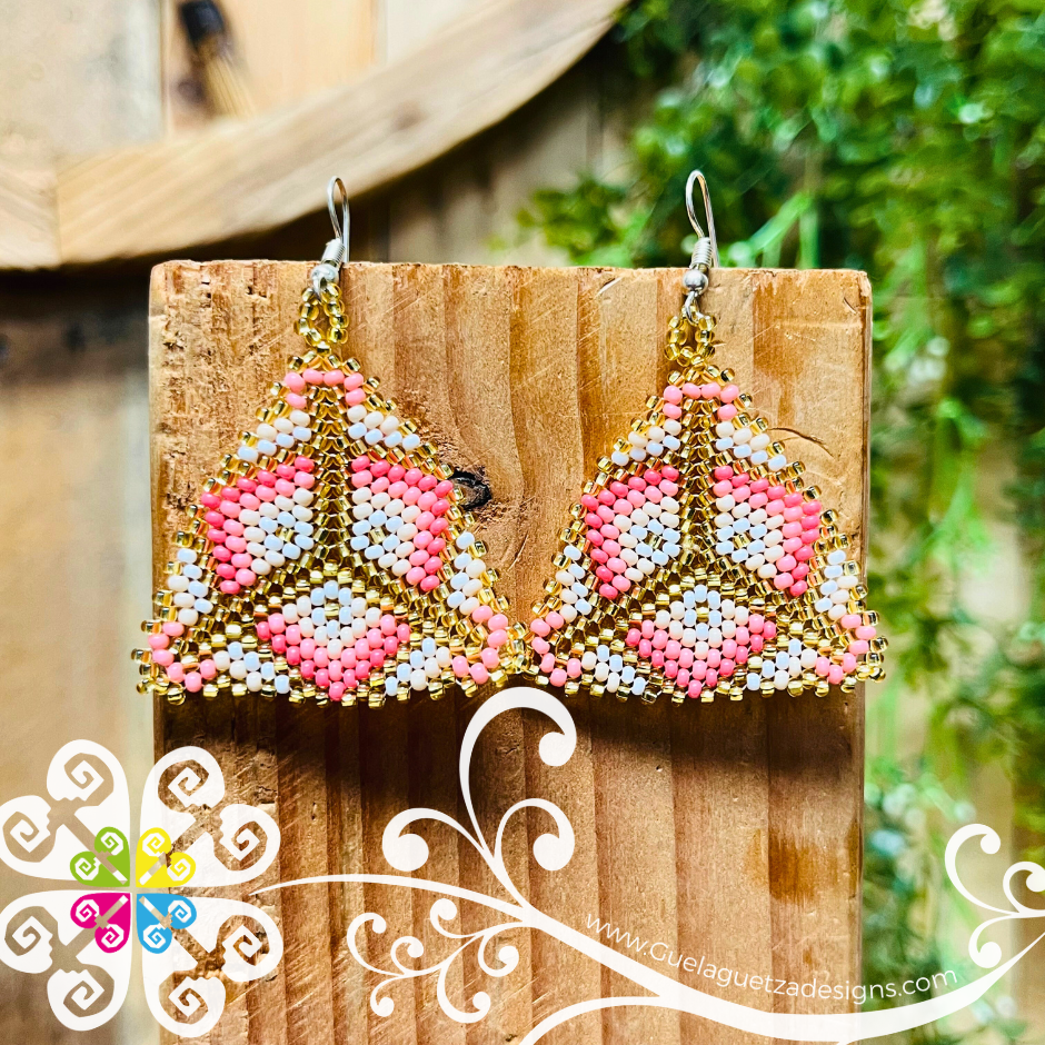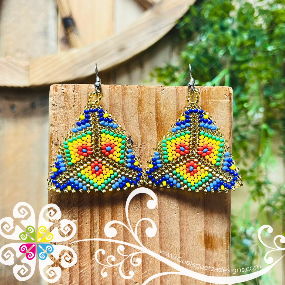 One of a kind earrings made with petite glass beads. Each design uses different shapes and colors, featuring a vibrant rainbow palette or just plain colors.