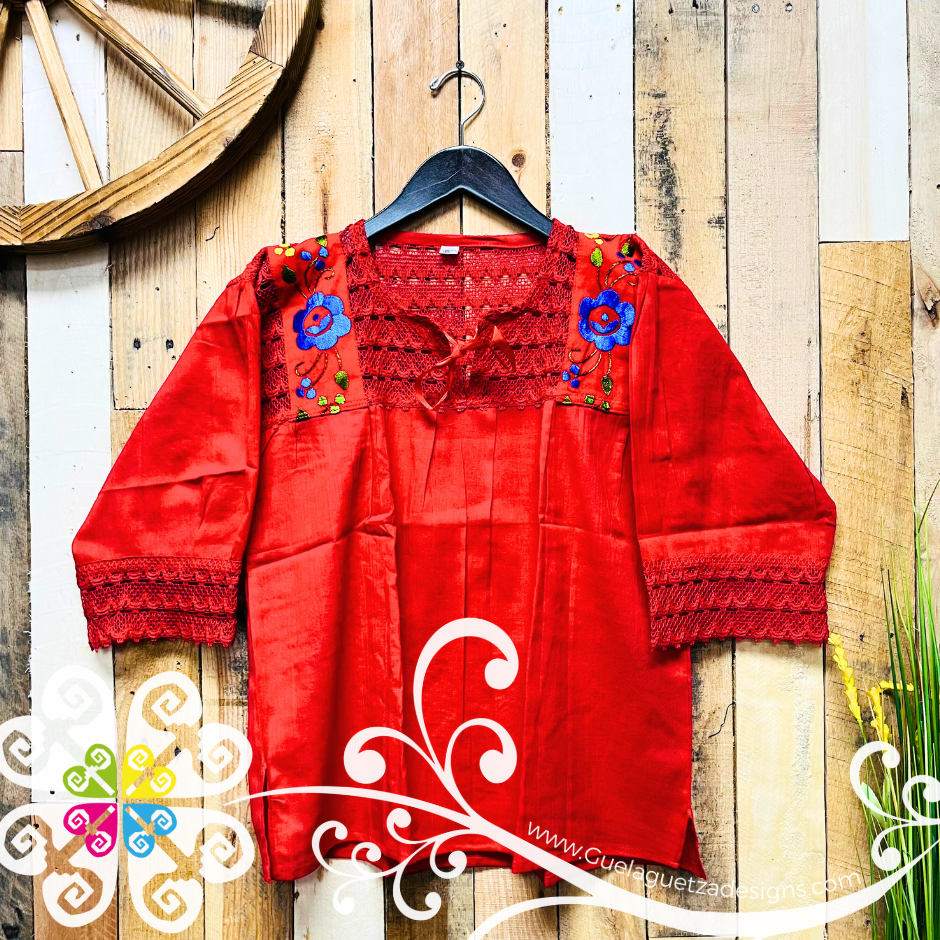 You will love the simplicity and comfort of this top! Made with 'manta corraguda' fabric and decorated with cotton lace. The button in the front helps to easily put it on and the hand-made emboirder elevates the style! Perfect design to use with jeans, shorts or skirts.