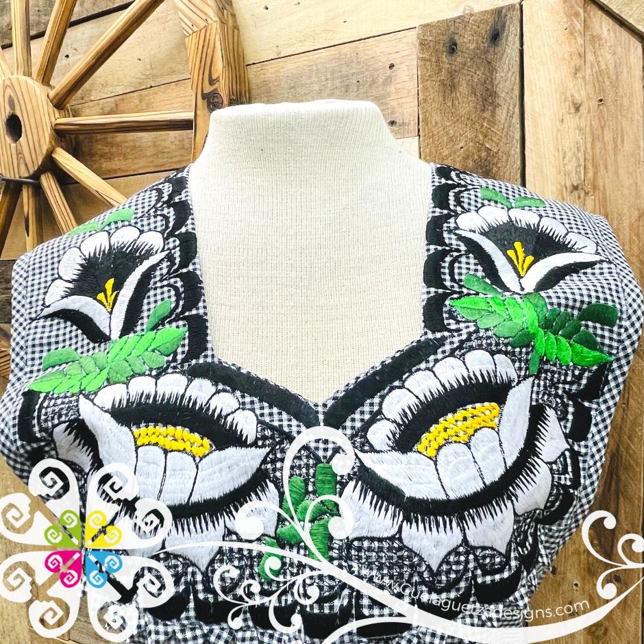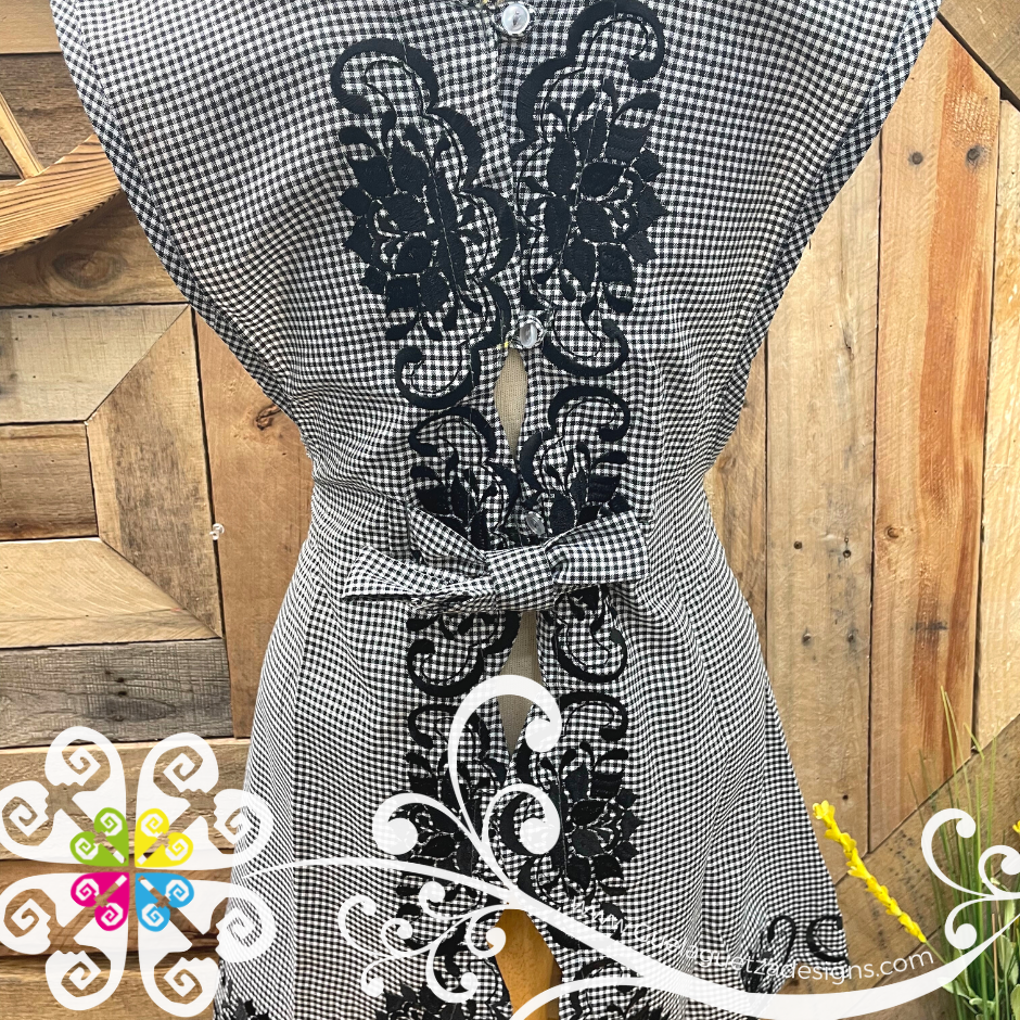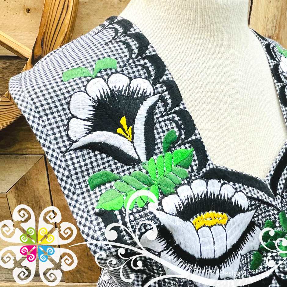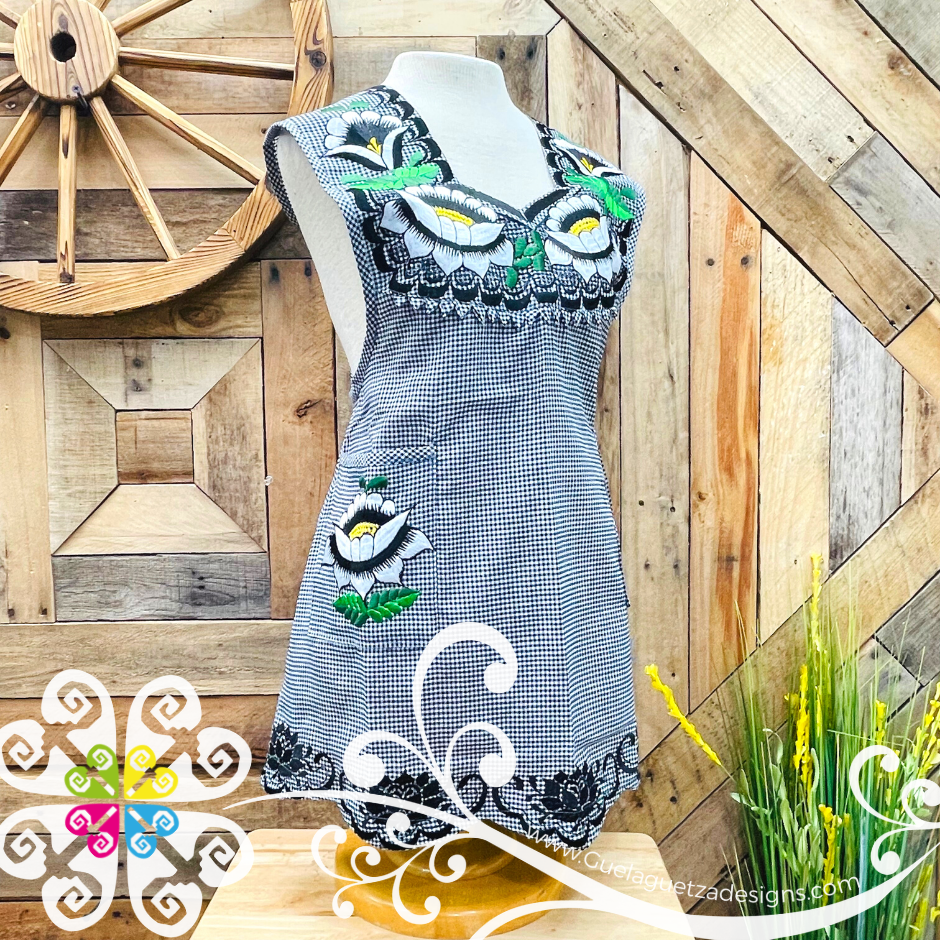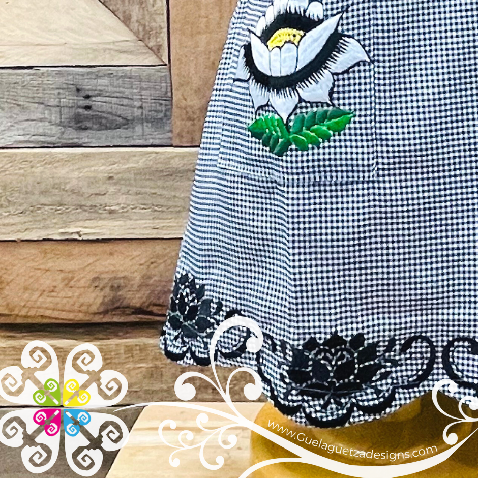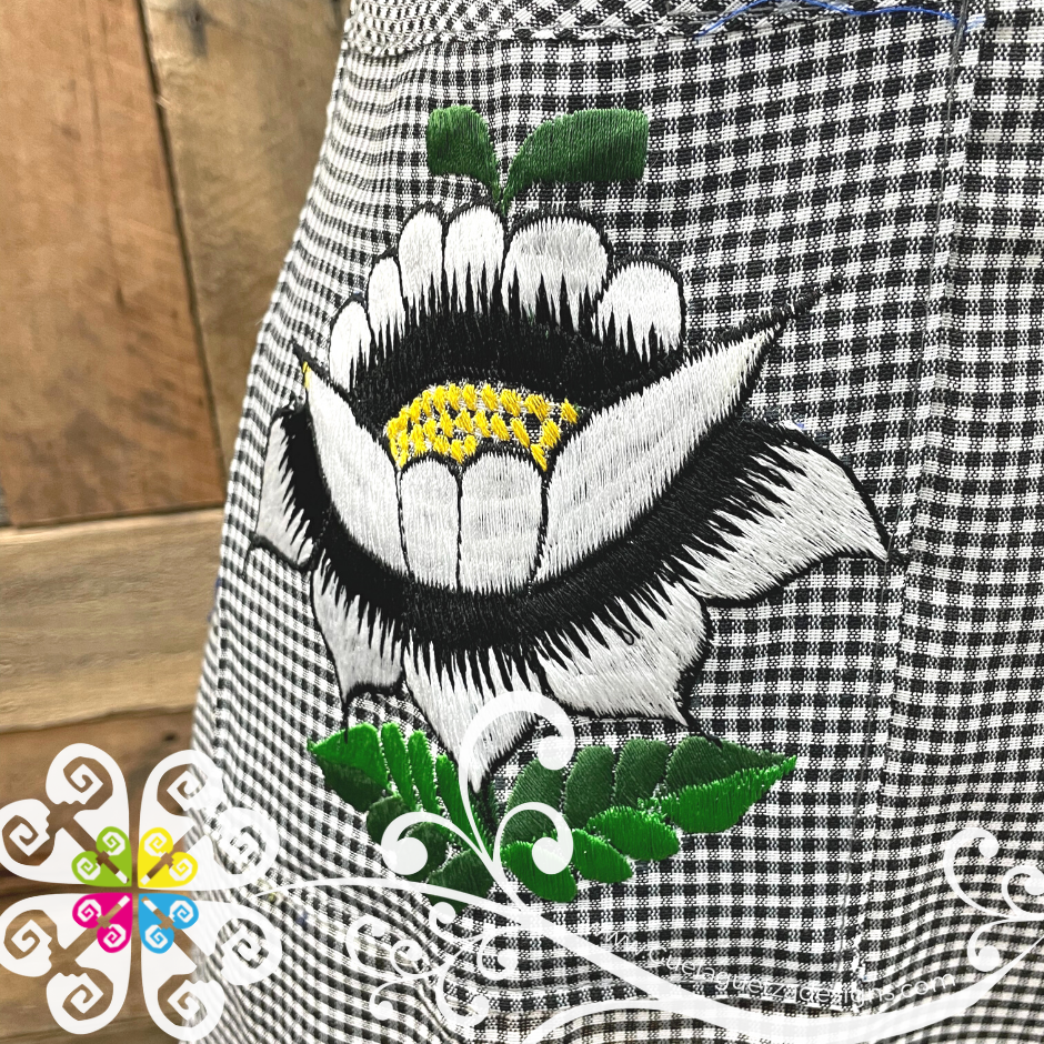 Black Big Flower Embroider Apron - Mandil Artesanal