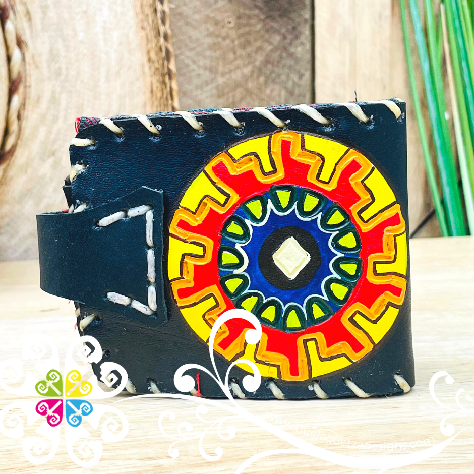 Traditional men wallet with a hint of Mexico's culture. Decorated stamping and hand painted designs in the front. You will love all the handmade sewing details with silk threads from top to bottom.