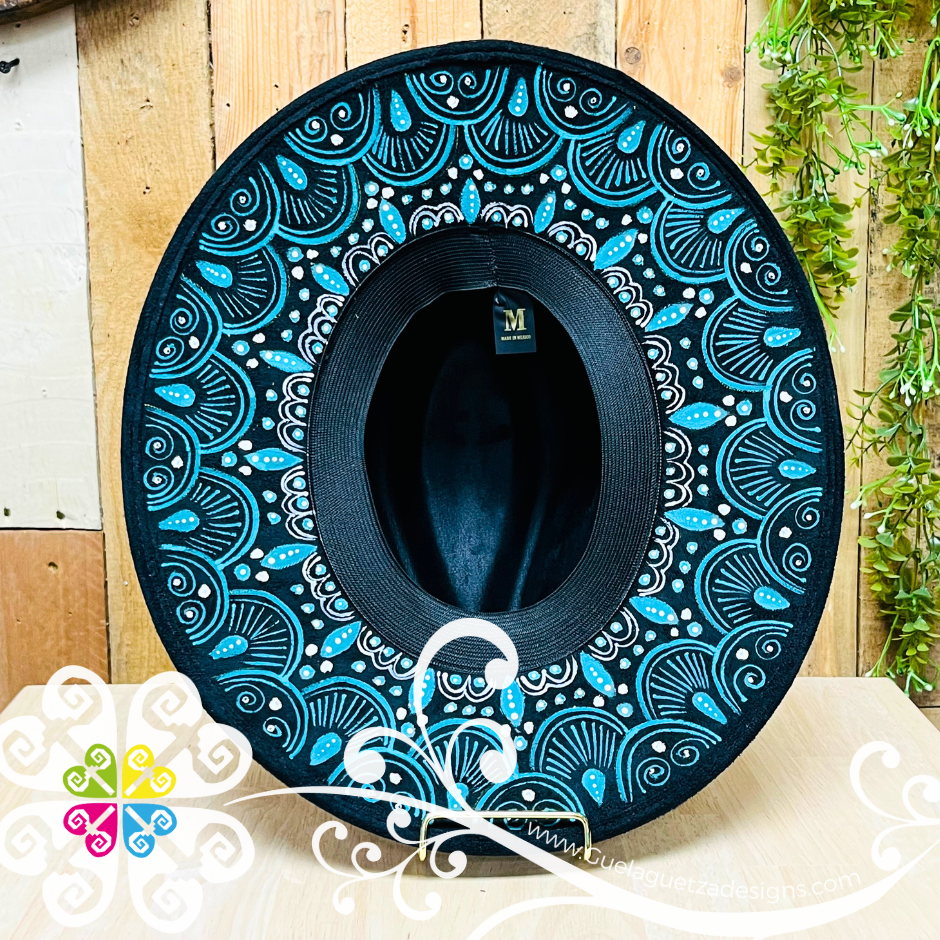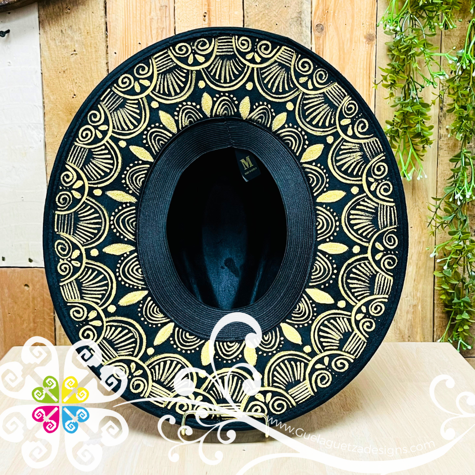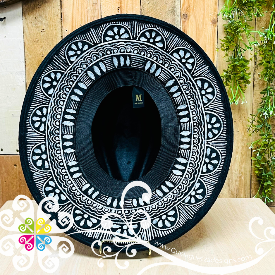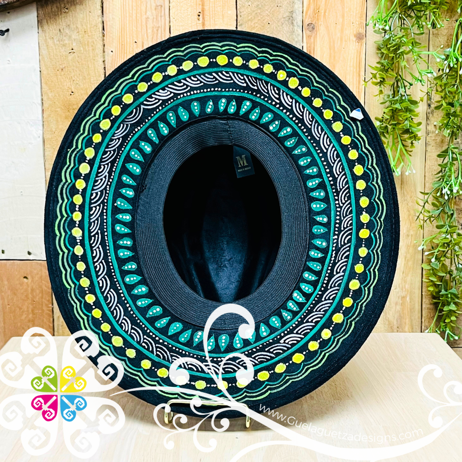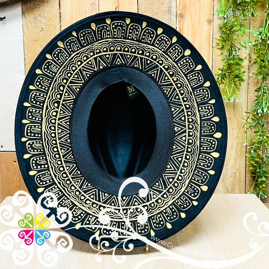Black Indiana Mitla Velvet Hat - Peek-a-Boo Hand Painted Hat