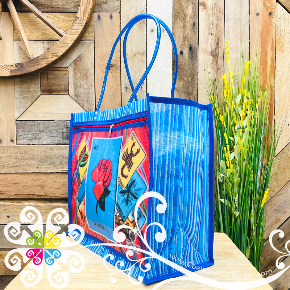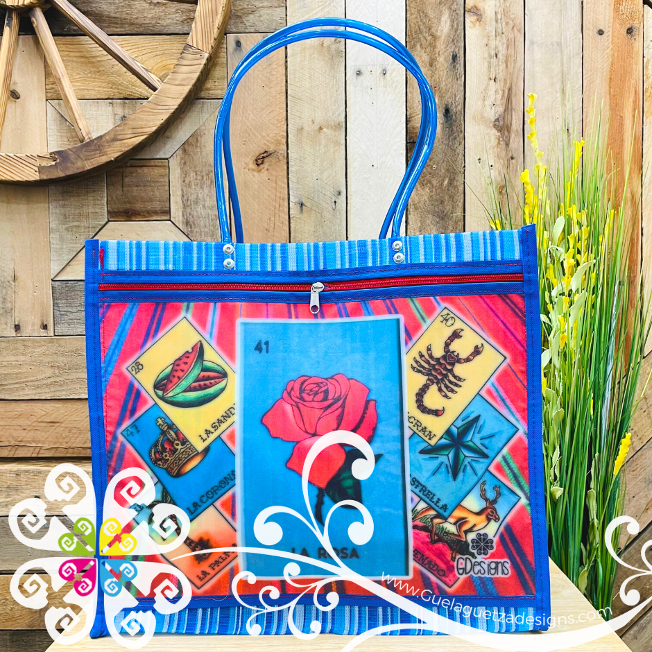 Inspired on the Mexican game LoteriaMX! Morral made with mesh material, front large pocket with zipper to secure your belongings. Very resistant material, water proof! Perfect for grocery shopping, beach bag, laptop bag or just about anything!