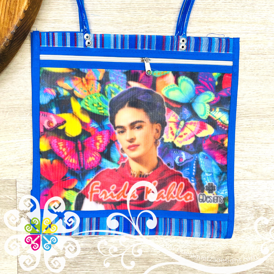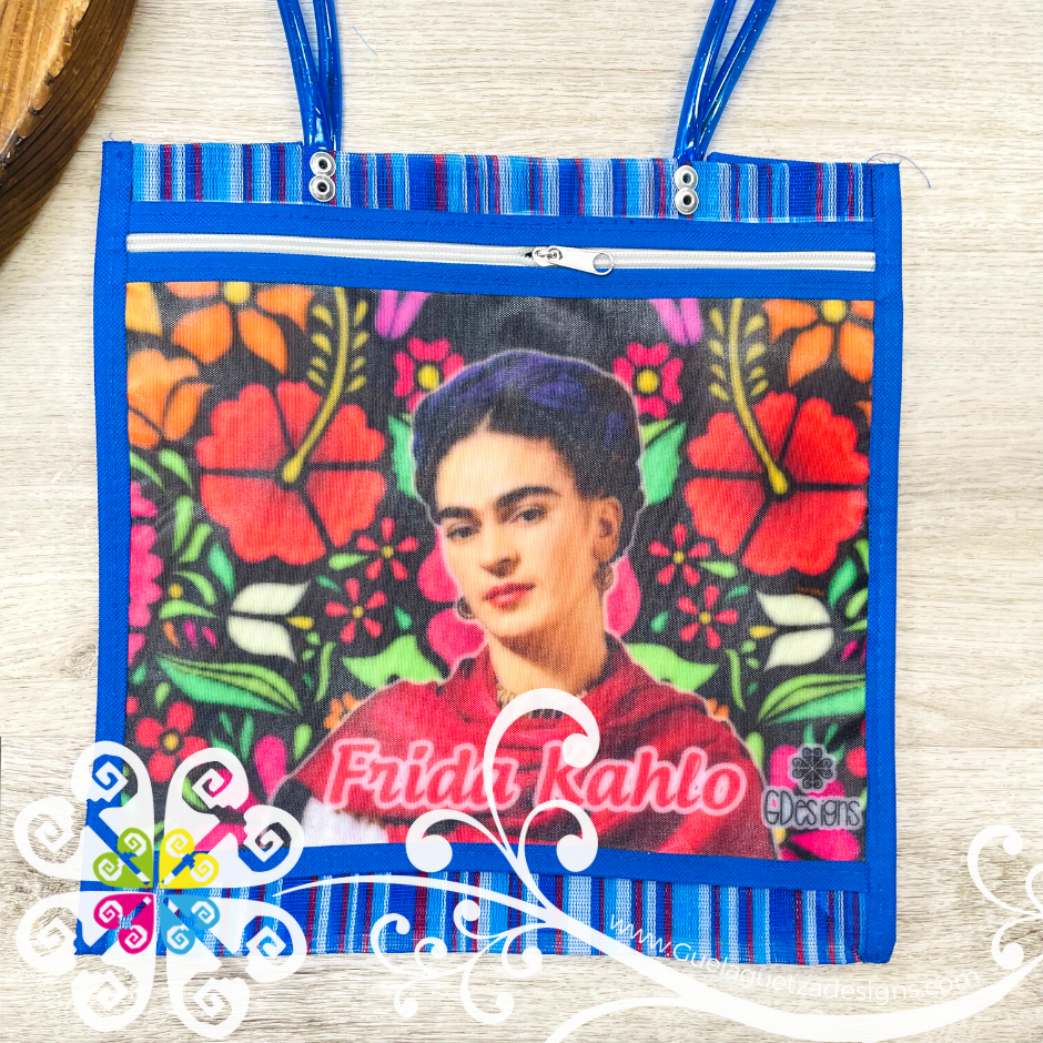 Inspired on the great Frida Kahlo! Morral made with mesh material, front large pocket with zipper to secure your belongings. Very resistant material, water proof! Perfect for grocery shopping, beach bag, laptop bag or just about anything!