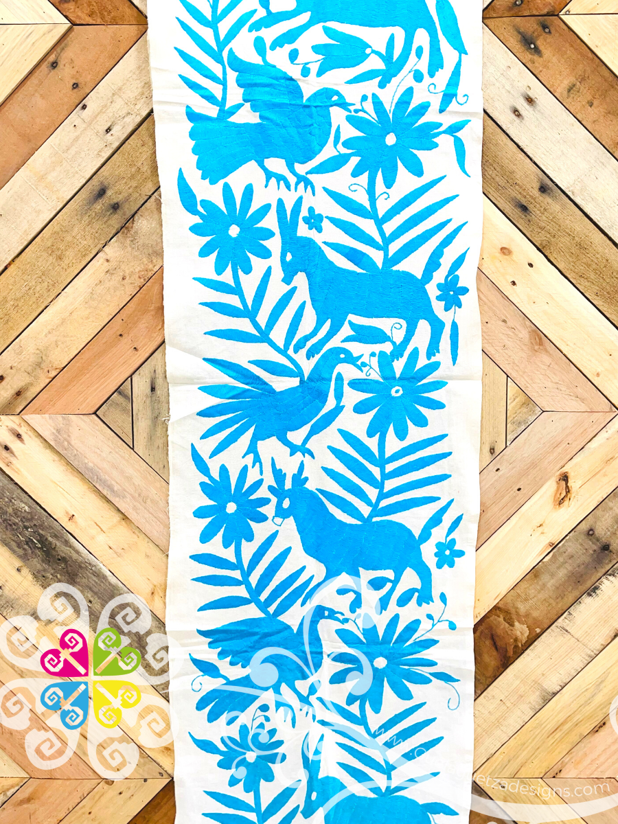 Blue Turquoise Large Solid Color Otomi Table Runner - Camino de Tenango