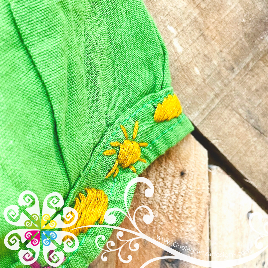 This fabulous one of a kind top is hand embroidered in Chiapas. The top is a statement piece you should not miss out on. Pair it with a Pair of jeans to complete the look that shoes off your heritage!