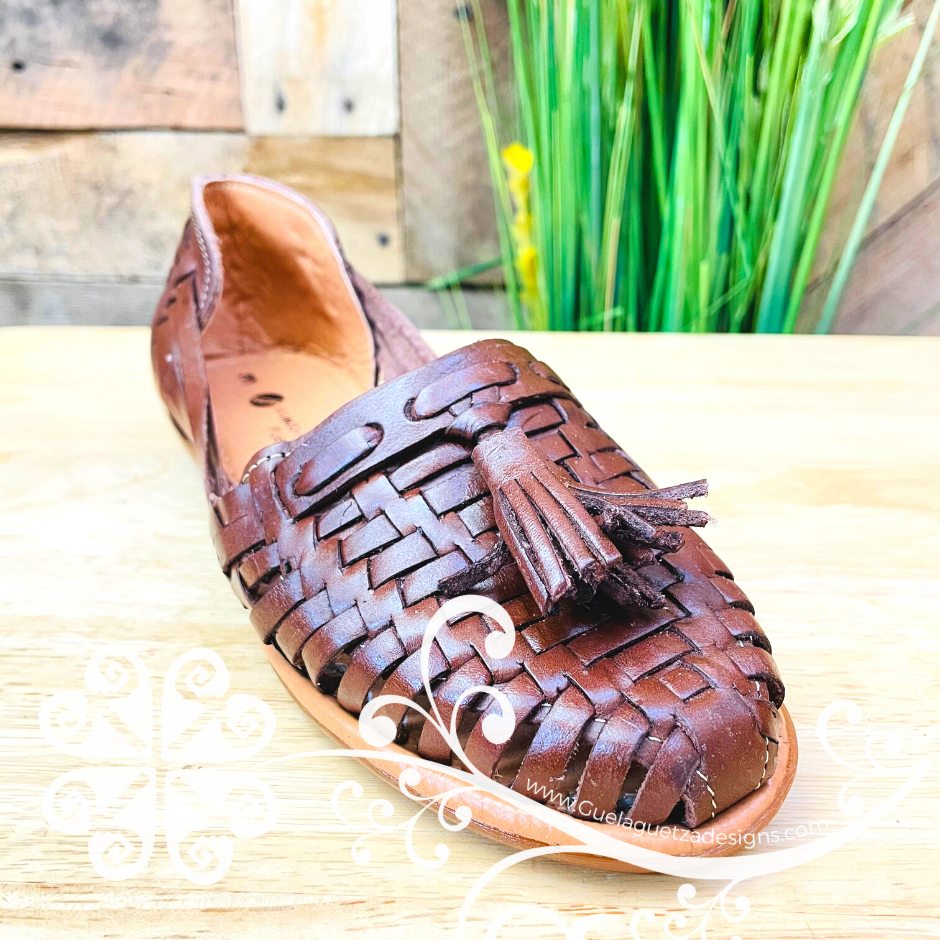 Beautiful artisan shoes made with 100% vacune leather. Handwoven by different craftsmen from Sahuayo, Michoacan. Enjoy the comfort and durability of a pair of footwear inspired by pre-Hispanic Mexican cultures. Perfect shoes for summer days and the perfect color that goes with almost everything you wear!