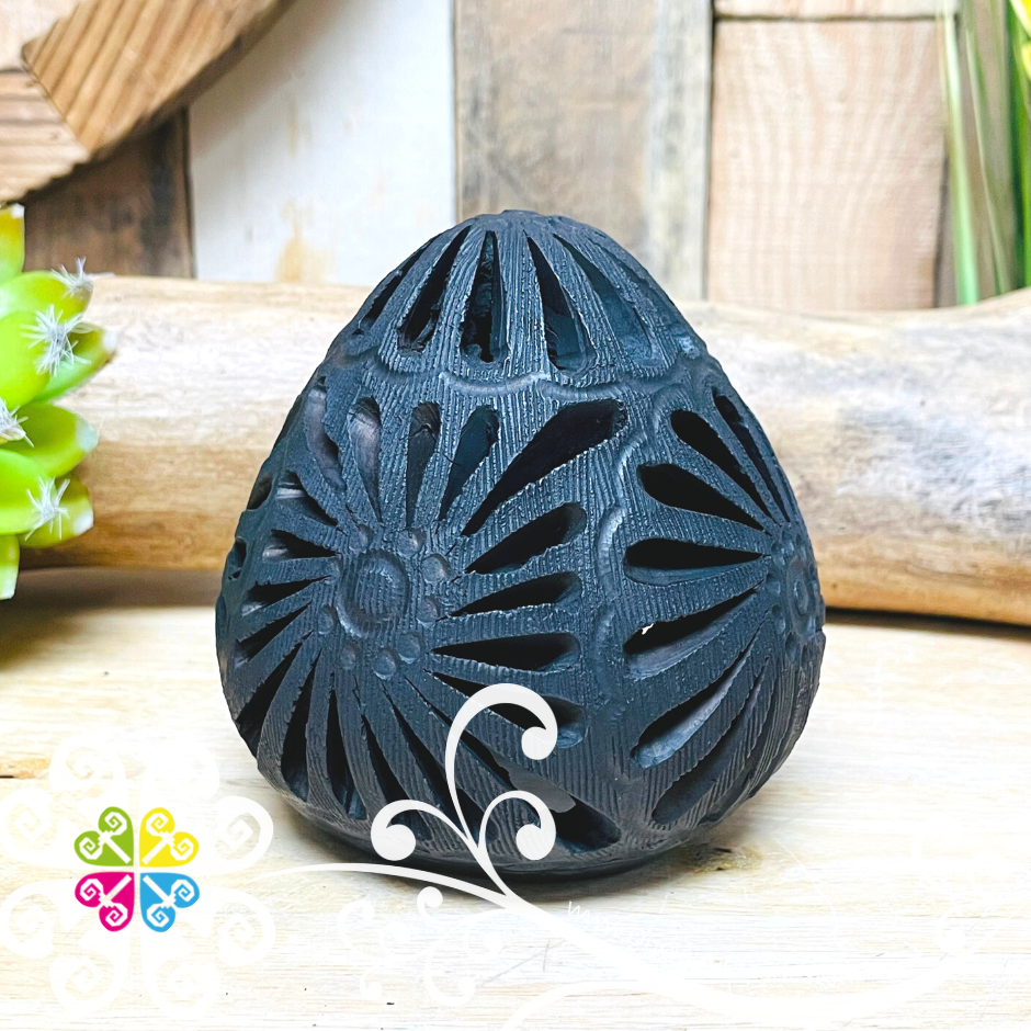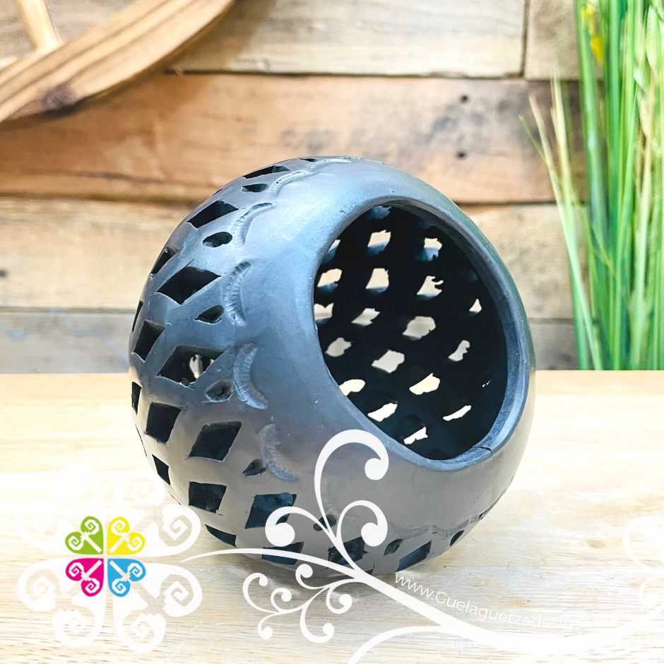 Beautiful handcrafted candle holder made with care and love by workshop from San Bartolo Coyotepec Oaxaca, Mexico. Light up your favorite candle and cover with this vase, you will love the beautiful shapes of lighting coming out of it.