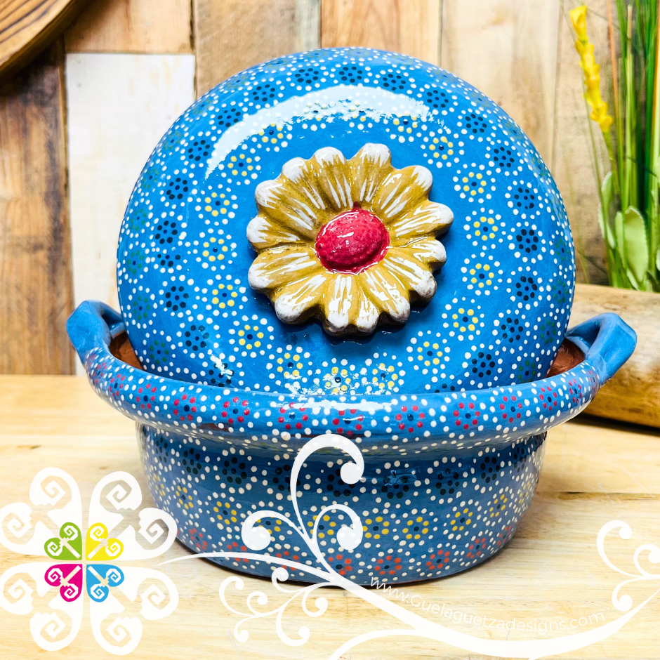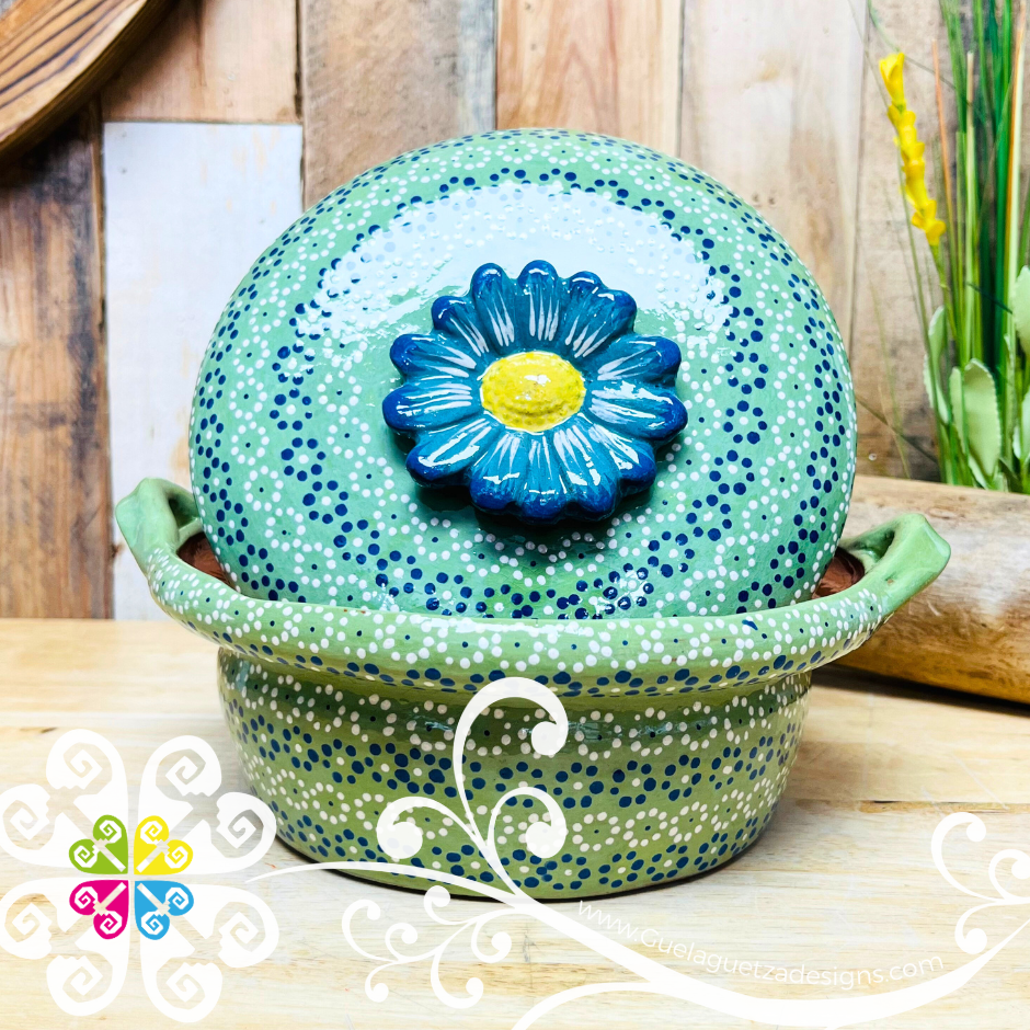 Beautiful clay Cazuelita created using ancient process by Mexican artisans from Capula, Michoacán, Mexico. Each design is crafted by hand by Family Glez Ayala with love and passion. Perfect for decoration or to pour your favorite calditos or entrees!