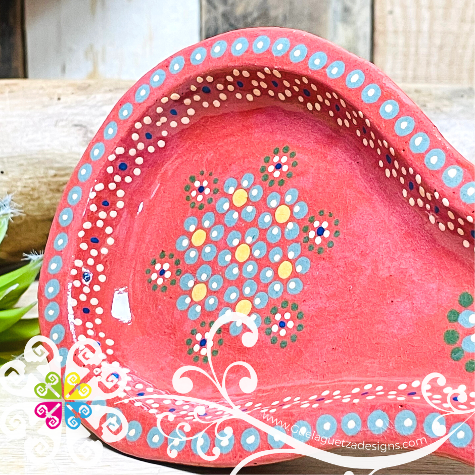 Beautiful clay plat created using ancient process by Mexican artisans from Capula, Michoacán, Mexico. Each design is crafted by hand by Family Glez Ayala with love and passion. Perfect for decoration or to serve your favorite appetizers!