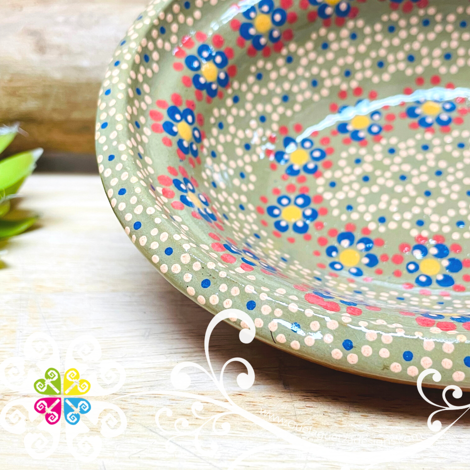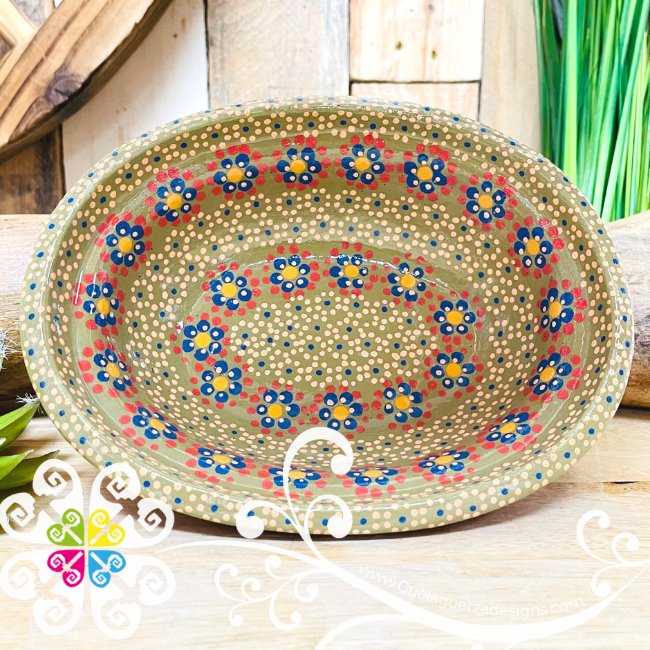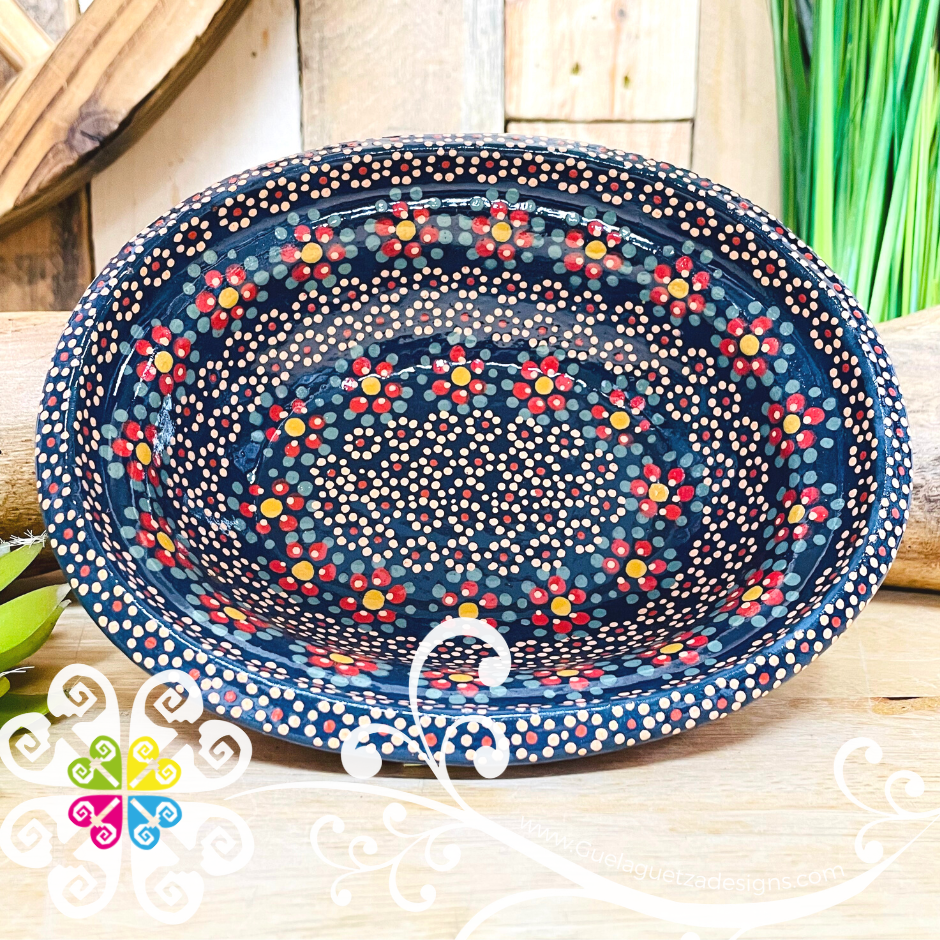 Beautiful clay Tray created using ancient process by Mexican artisans from Capula, Michoacán, Mexico. Each design is crafted by hand by Family Glez Ayala with love and passion. Perfect for decoration or to pour your favorite salsas or appetizers!