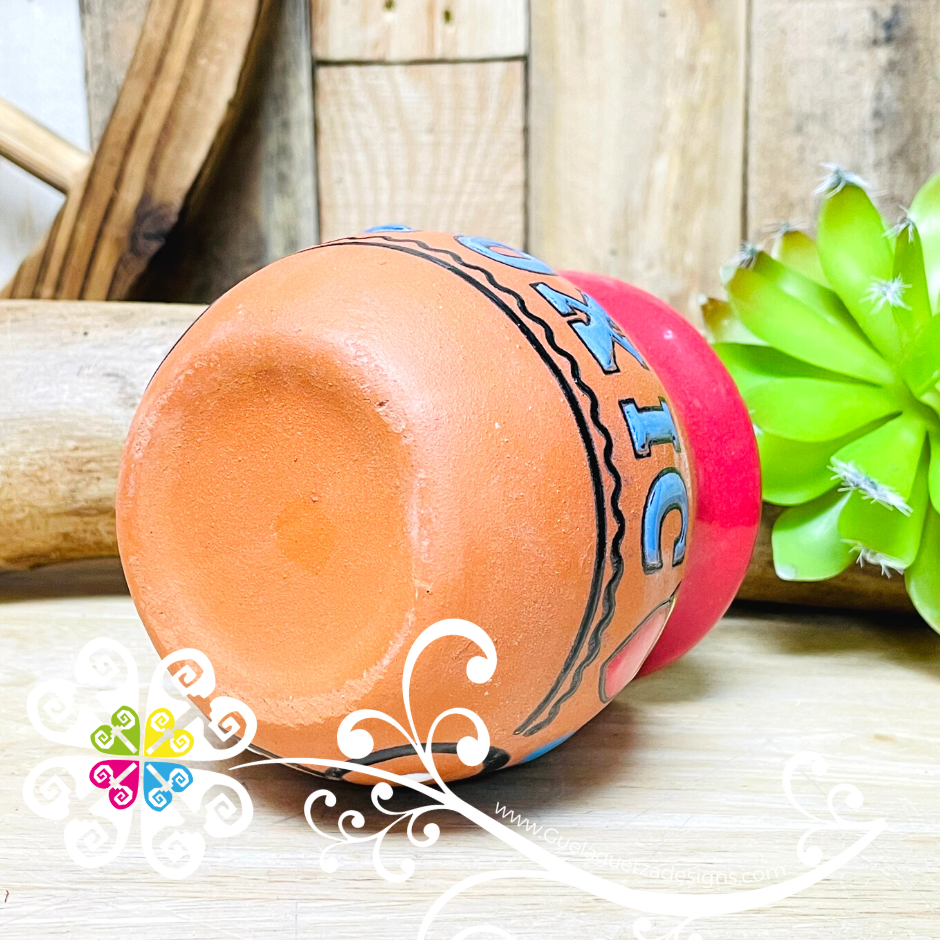 Beautiful clay mug created using ancient process by Mexican artisans from Dolores Hidalgo, Mexico. Each design is crafted by hand, with love and passion. Perfect for decoration or safe to drink any cold or hot liquids from it.