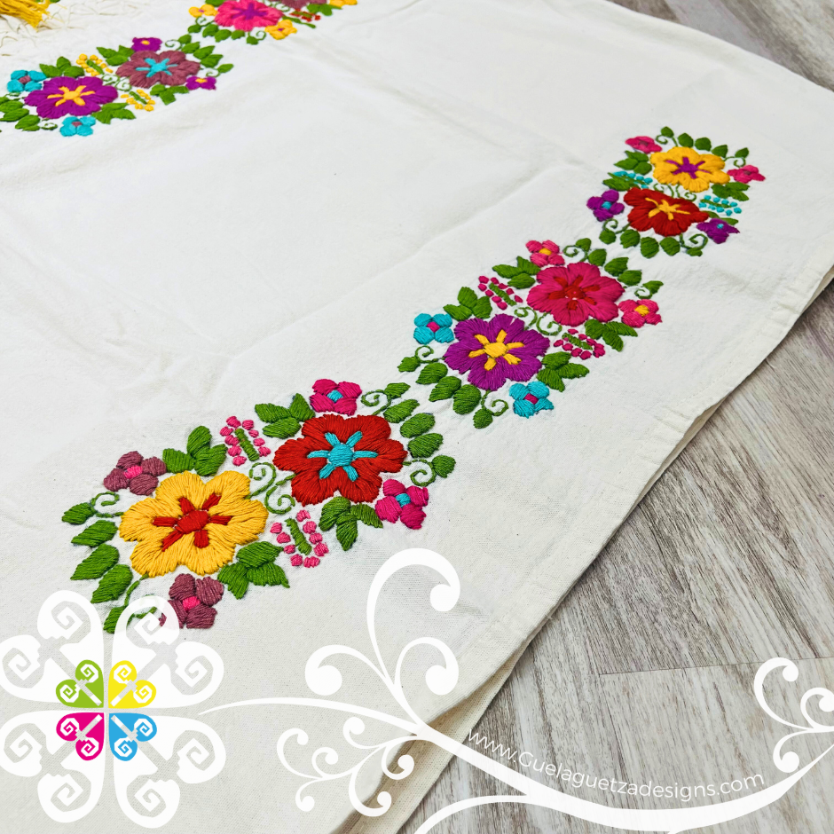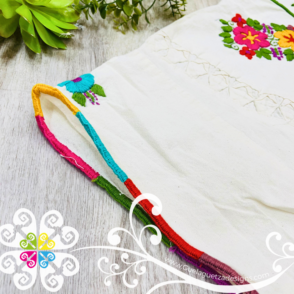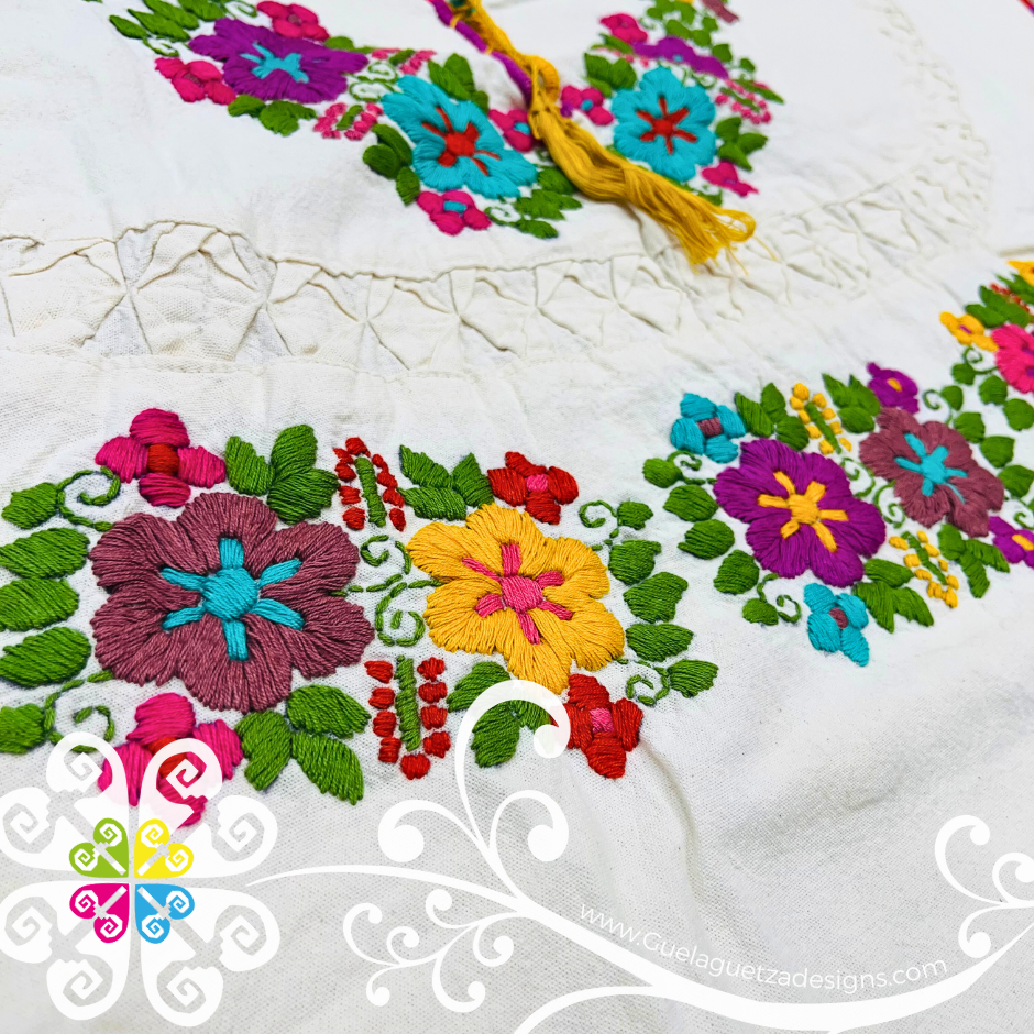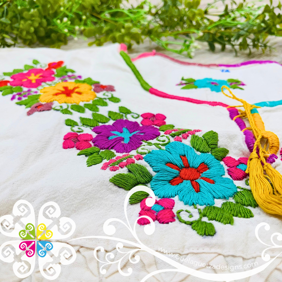 The front features beautiful handmade flower bouquets embroidery and a half moon pinched stripe. Fabric is 100% cotton. This size fits Large and X-large sizes. Make sure to measure yourself before ordering.